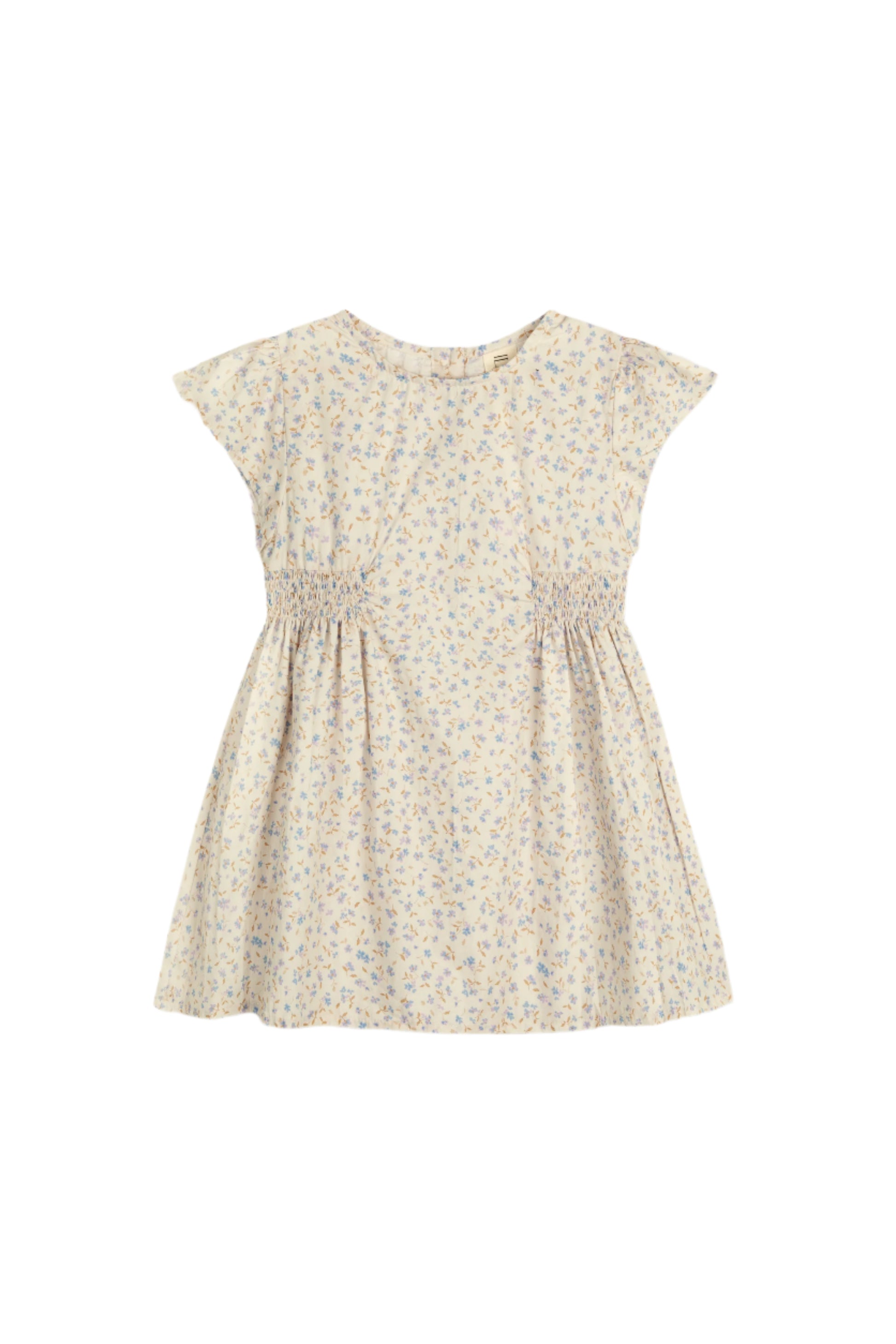 The Blossom Dress from Illoura The Label in a bespoke Indigo Bloom print is an elevated everyday style crafted from durable cotton poplin. With shirred side panels for comfort, flutter sleeves, and natural shell buttons at the back, it’s a beautifully considered piece — easy to wear, effortless to style, and made to move through every moment of childhood.