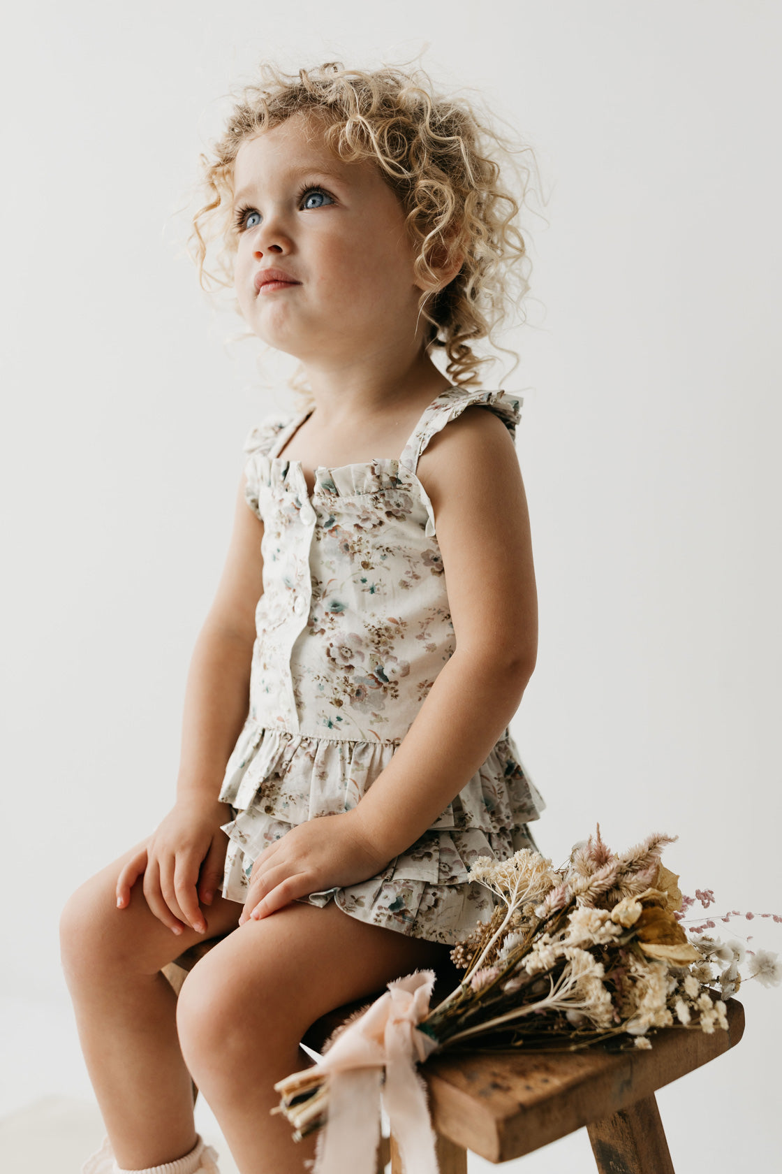 Designed to match perfectly worn over the sweet Sydney Skirt or Sydney Bloomer in Esme Floral or wear layered with the Aurelie Cardigan in Marshmallow Fleck on cooler days.