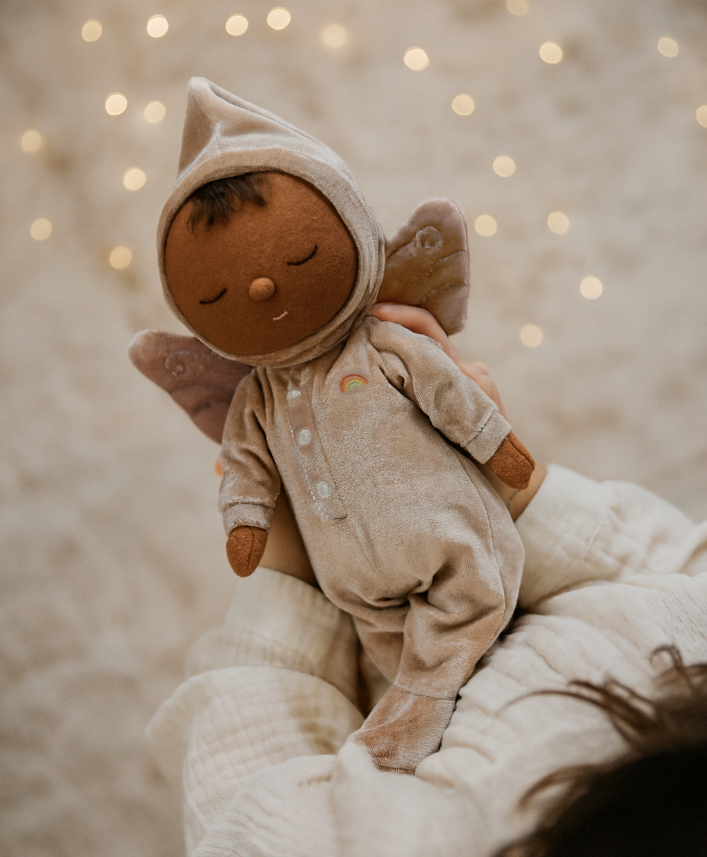 Fairy Ada drifts through the Rainbow Realm half-asleep, wrapped in the softest velvet and ready to snooze wherever you put her. A soft friend for quiet moments (but still always bringing special fairy magic wherever she goes).