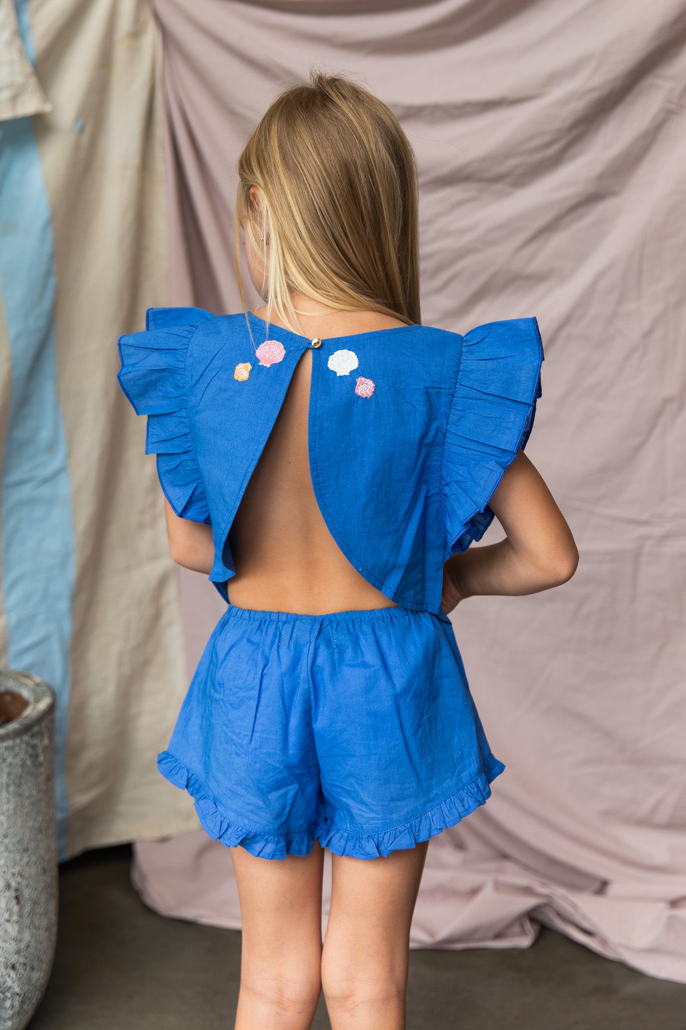 This Lucia top is so pretty it features flutter sleeves that bring a lighthearted, playful feel to your little one’s look. The scooped back opening not only adds a stylish twist. Adorned with beautiful embroidery details, this top blends charm and ease, making it perfect for sunny days filled with fun and adventures.
