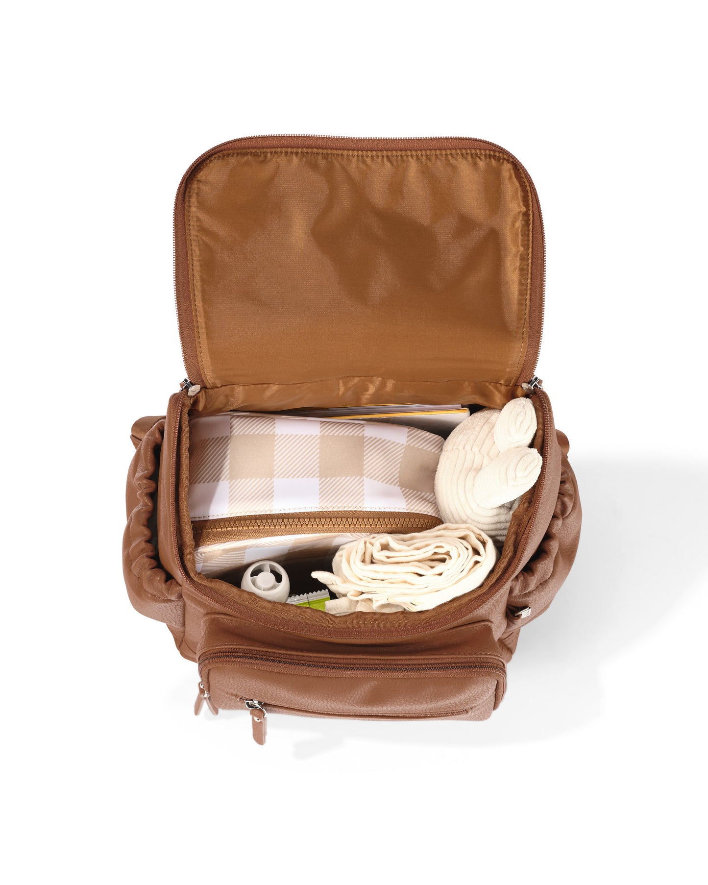 OiOi Mini Vegan Leather Signature Backpack Chestnut Brown