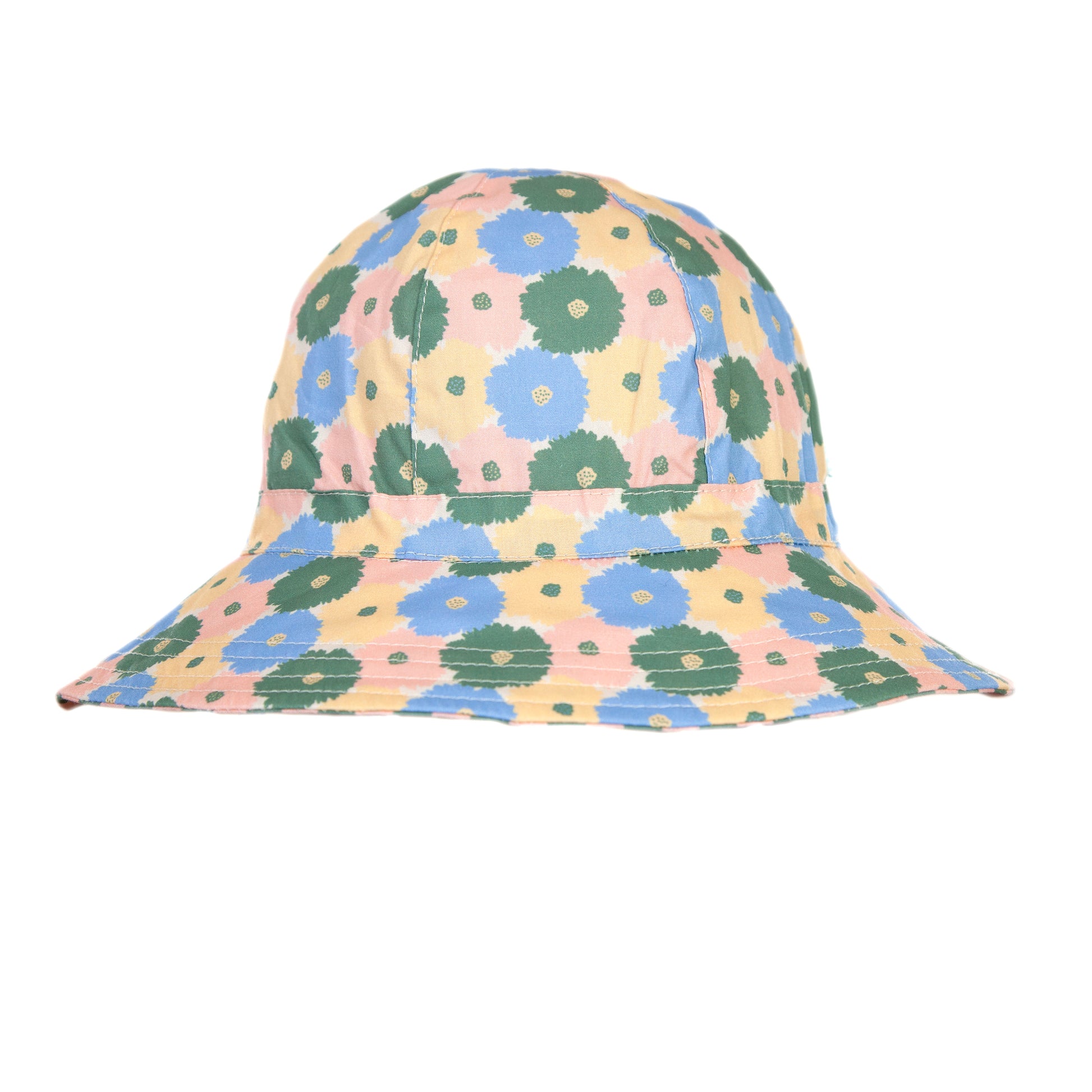 - Reversible sunhat with a flowers in bloom print on the outside and a dusty pink and green striped print on the reverse, both prints are designed by Jacinta Weir from Two Little Ducklings.