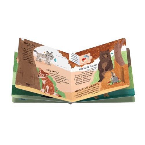 Lift the little windows inside the book and discover lots of interesting facts about the animals of The Woods, their environment, and why they are in danger. Then play with the cards to train your memory!