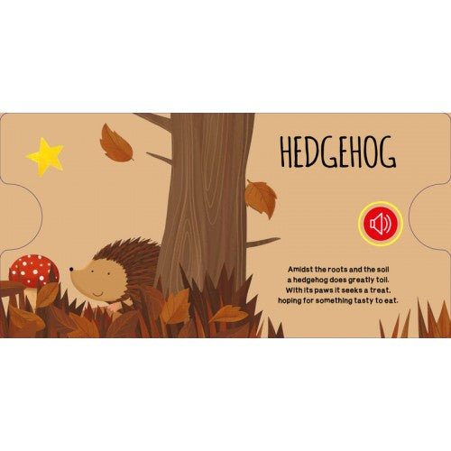 The Wood Sound Book from Sassi is perfect for little ones who are curious about animals living in the woods. Read all about the animals who live in the wood, press the buttons to hear the sounds they make push and pull the tab to hear a lovely tune while reading!