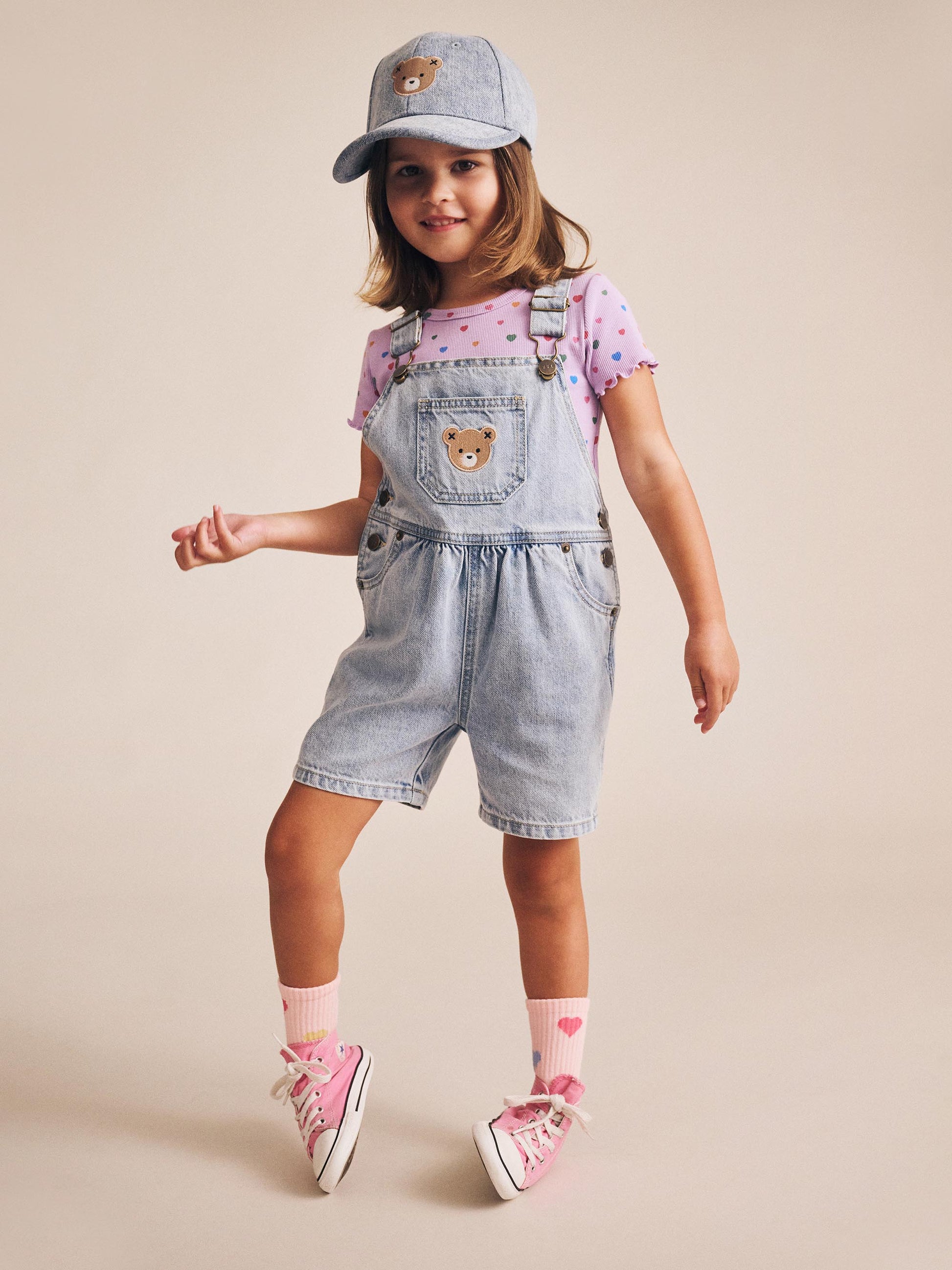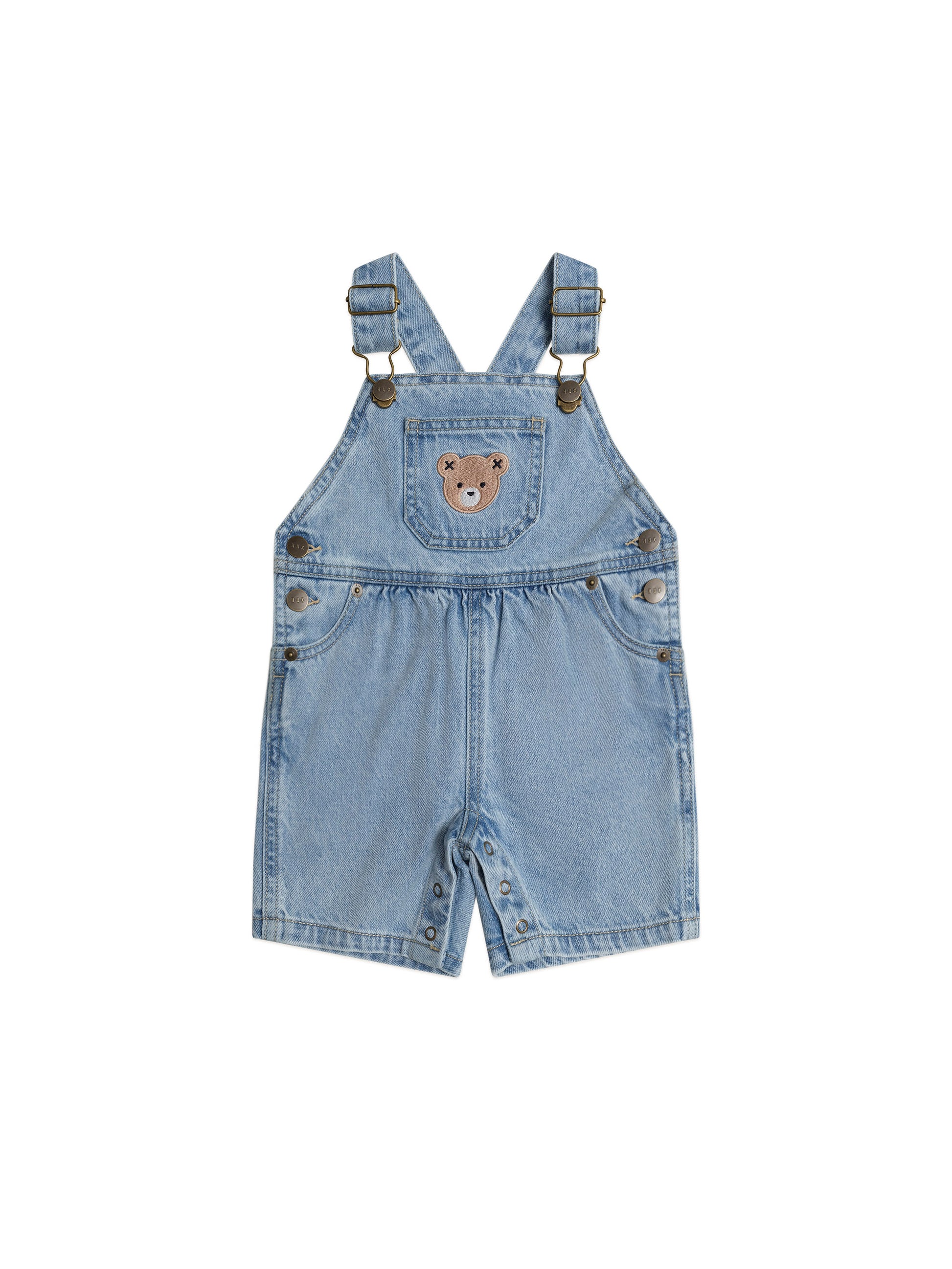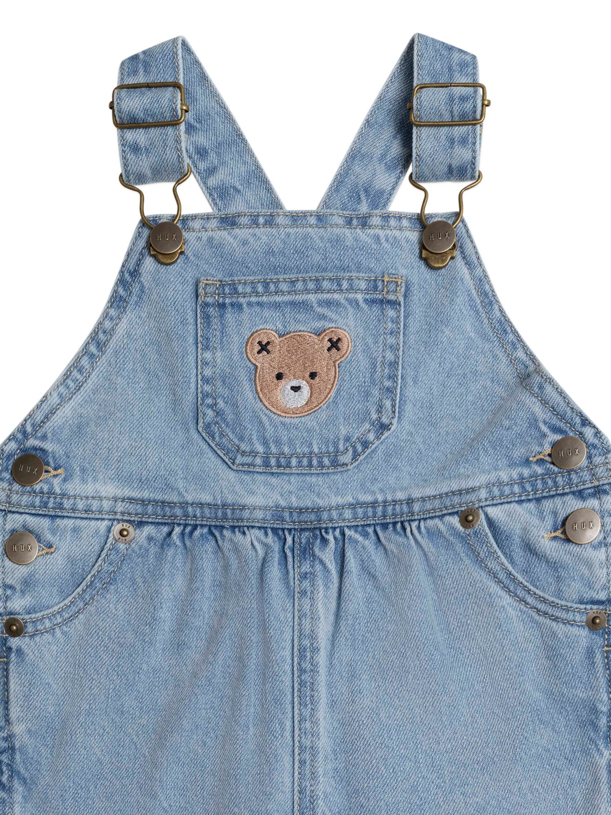 A classic pair of 90s short overalls in quintessential blue. Made from the softest denim you’ll ever feel, they feature adjustable straps for comfy wear, chest, side and back pockets perfect for stashing treasures in and a classic Huxbear embroidery. Baby sizes include stainless steel crotch snaps for easy dressing. Style them alone or over a tee.