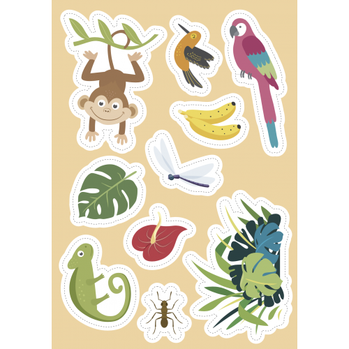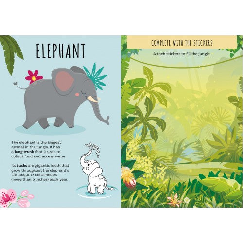 Play, learn, and have fun with The Jungle Stickers and Activities Book from Sassi. This jungle-themed 24-page activity book is full of pages to colour, mazes to solve, stickers to stick, and lots of trivia about the world of Prehistory’s most renowned creatures. This innovative book is full of activities and comes with 60 stickers.