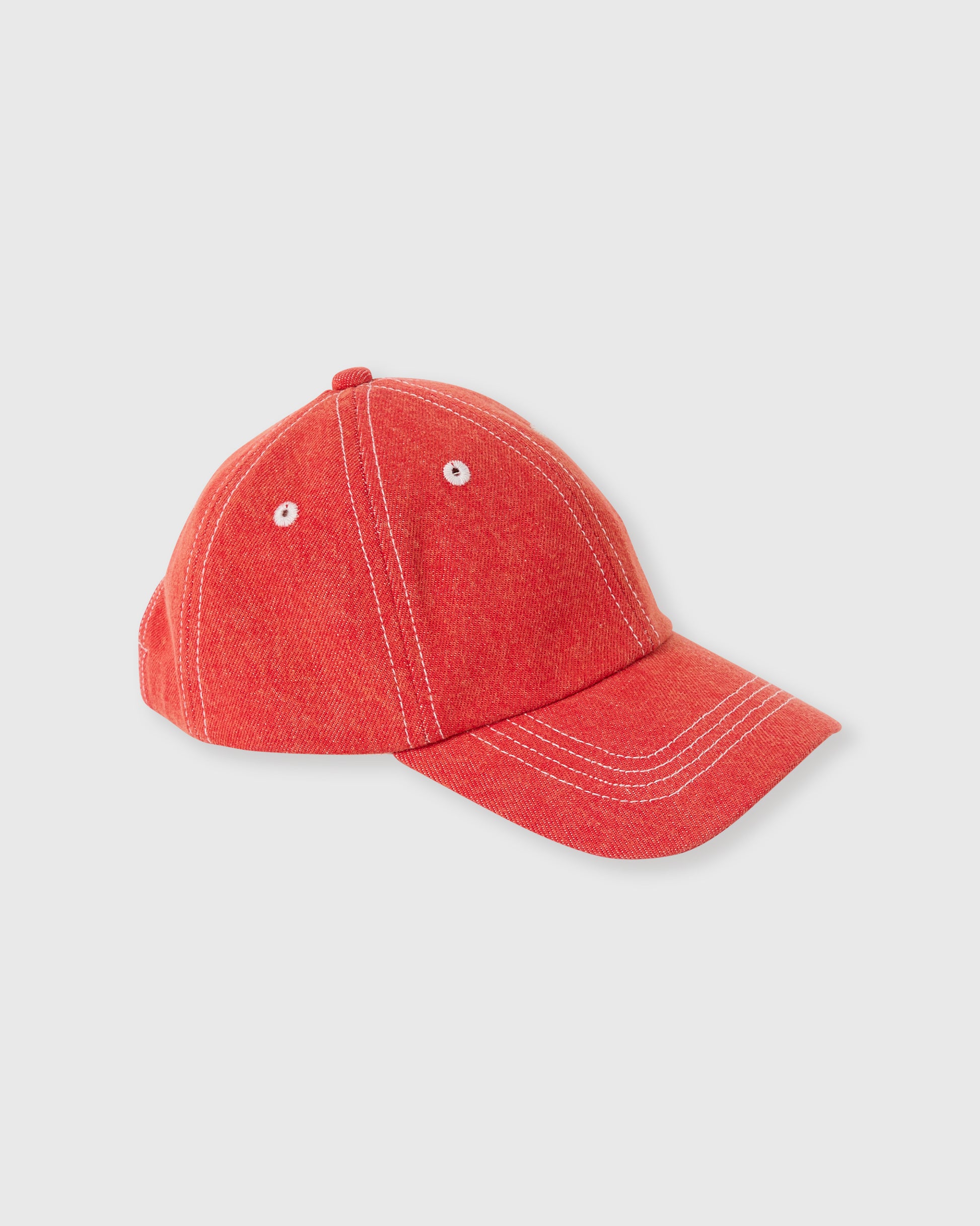 True to size. Denim cap featuring contrast stitching and embroidered logo. Adjustable at back.