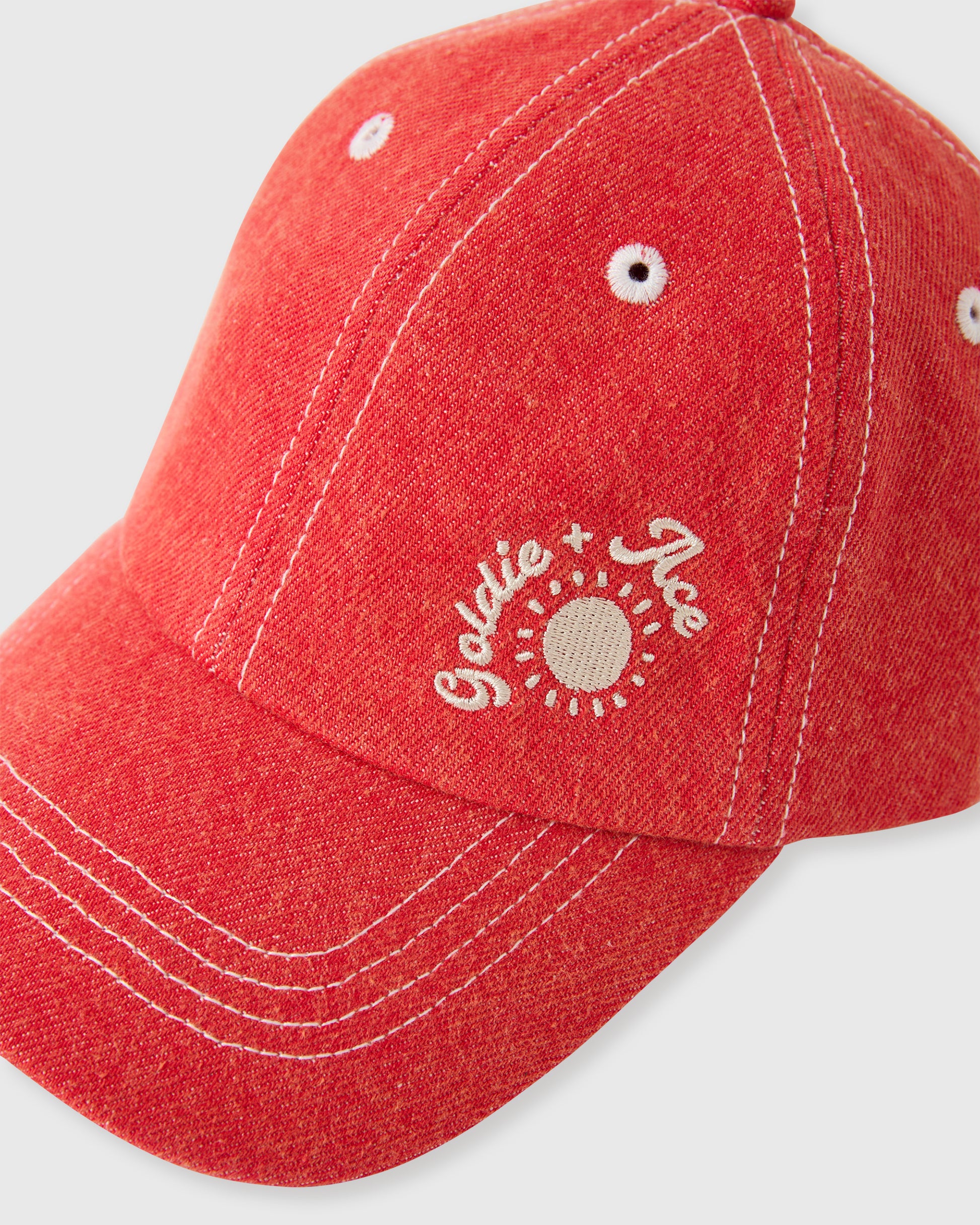 Goldie + Ace Tate Embroidered Denim Cap Apple Red