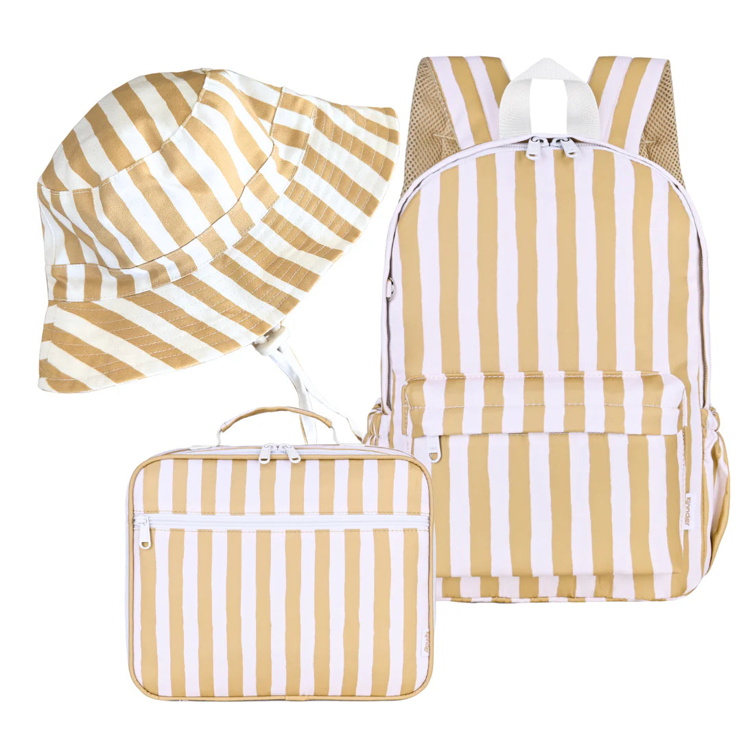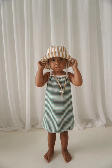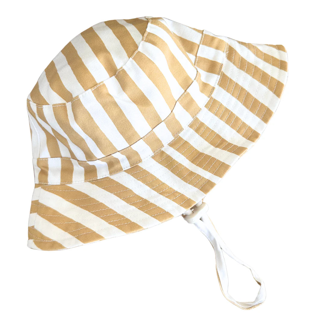 Kinnder Kids Wide Brim Cotton Bucket Hat Mustard Stripe