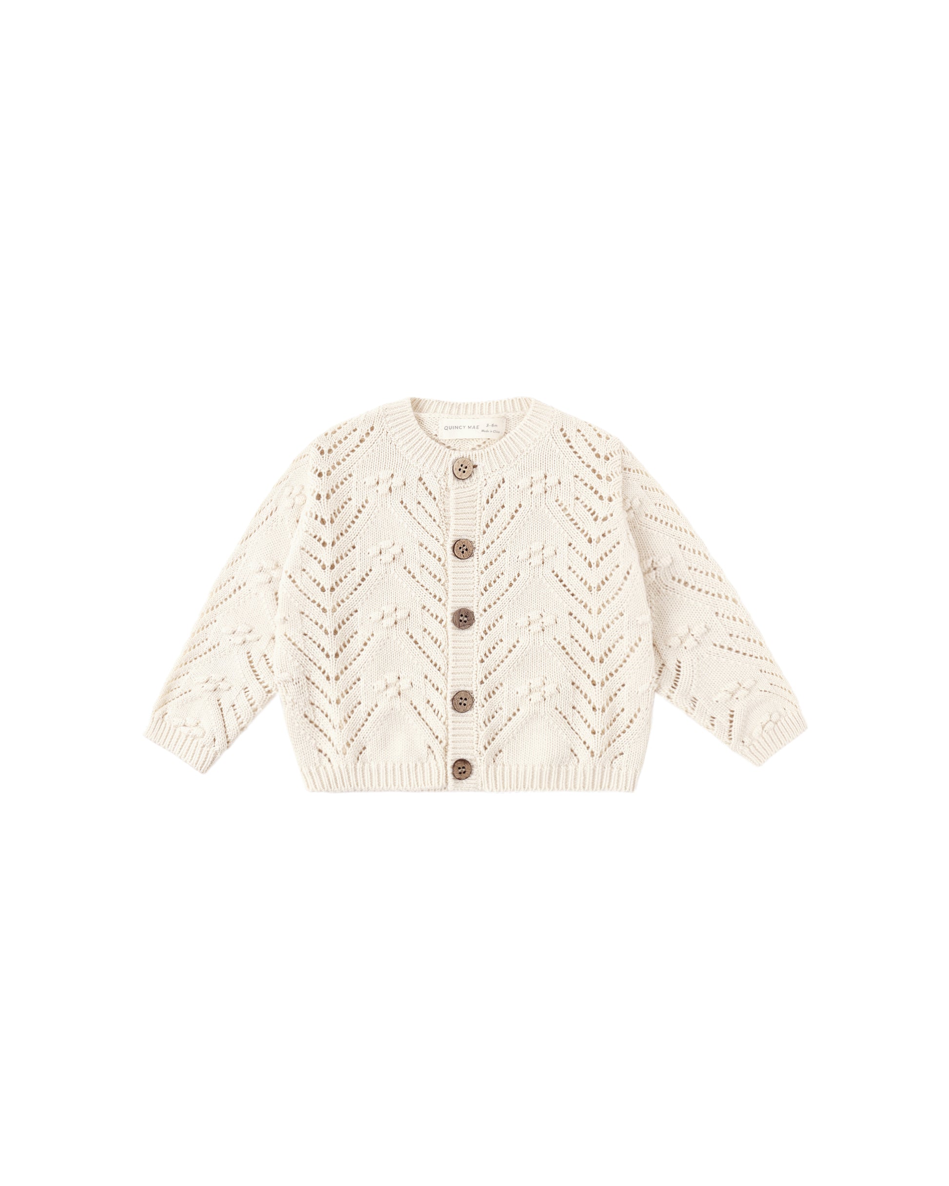 The Quincy Mae Knit Cardigan in Natural features a beautiful knit design and coconut buttons for an extra sweet look.