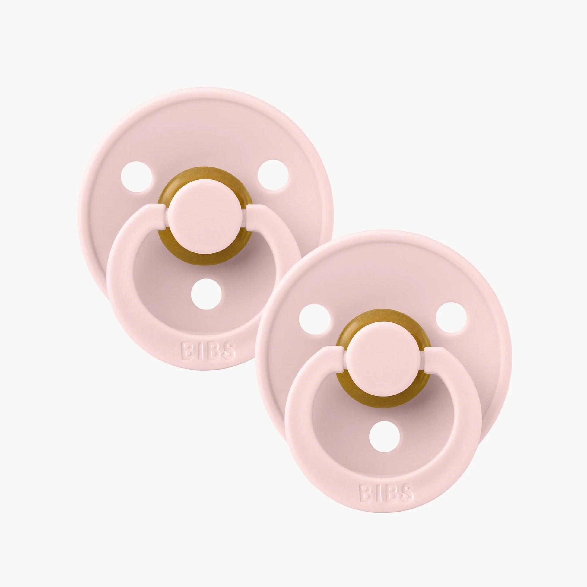 A fantastic pack of 2 Colour Pacifiers by Bibs Dummies in Blossom pink. Trusted by parents for over 30 years, BIBS dummies feature a cherry shaped nipple and lightweight shield to mimic a mother's skin, allowing your little one to transition from breast to pacifier smoothly. BIBS dummies are made from 100% natural rubber and are completely free from BPA, PVC and phthalates. Choose from over 40 colours to complete your child's look!
