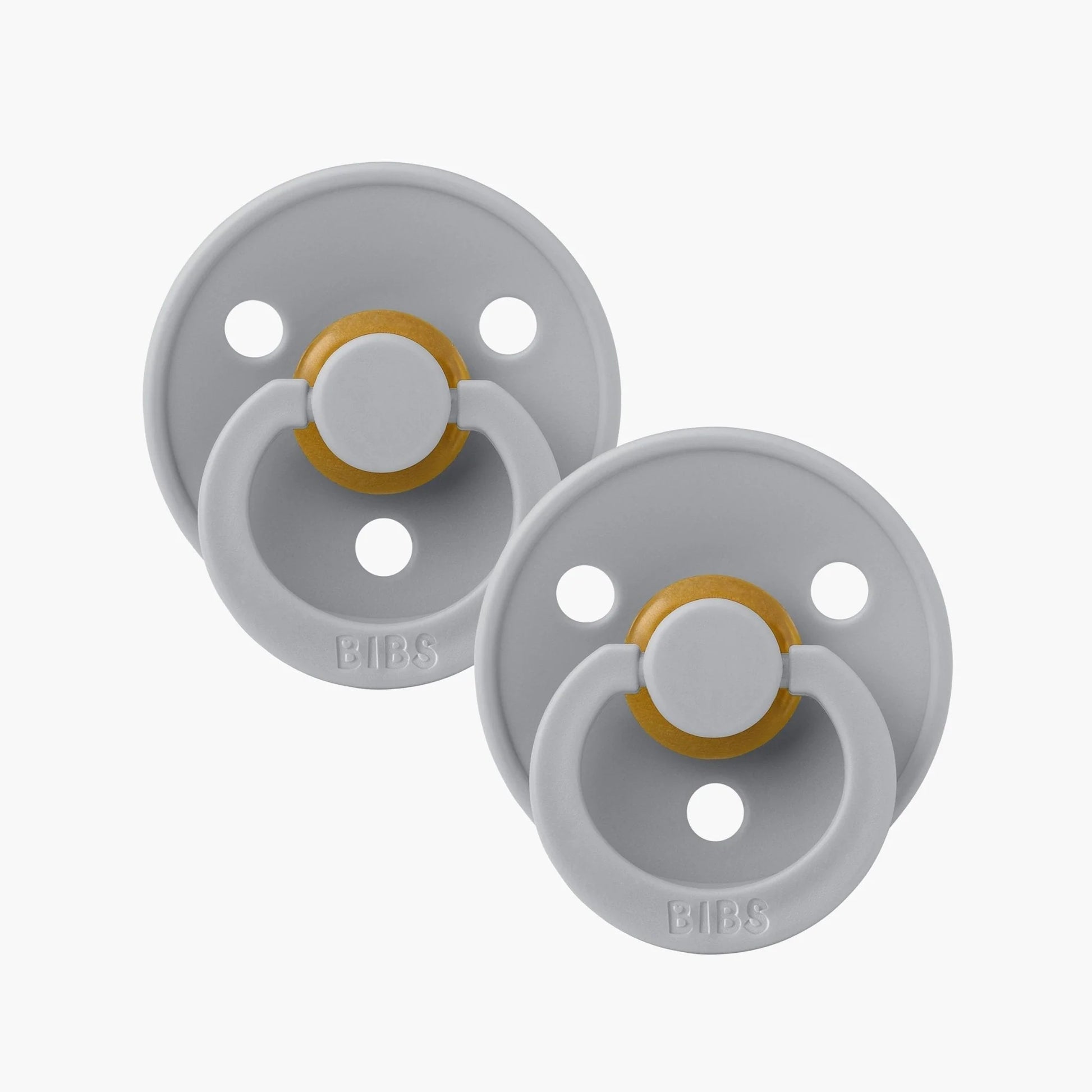 A fantastic pack of 2 Colour Pacifiers by Bibs Dummies in Cloud. Trusted by parents for over 30 years, BIBS dummies feature a cherry shaped nipple and lightweight shield to mimic a mother's skin, allowing your little one to transition from breast to pacifier smoothly. BIBS dummies are made from 100% natural rubber and are completely free from BPA, PVC and phthalates. Choose from over 40 colours to complete your child's look!