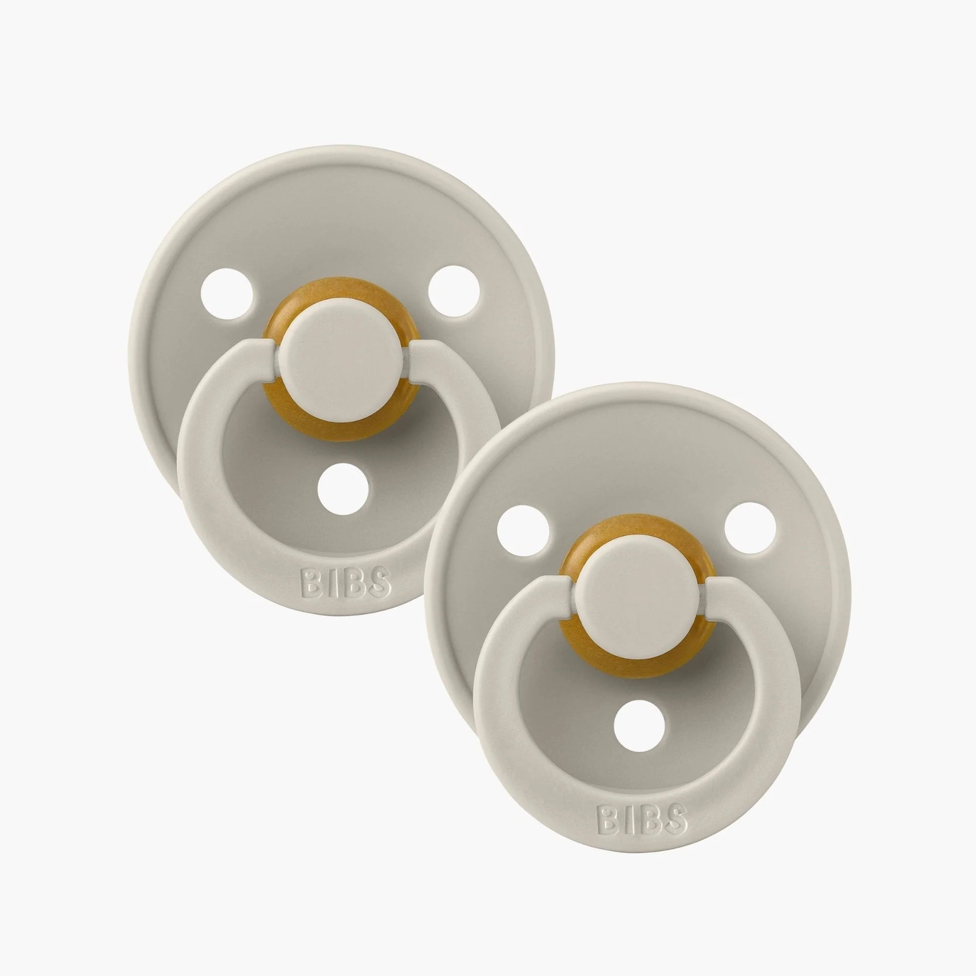 A fantastic pack of 2 Colour Pacifiers by Bibs Dummies in Sand(Light Grey). Trusted by parents for over 30 years, BIBS dummies feature a cherry shaped nipple and lightweight shield to mimic a mother's skin, allowing your little one to transition from breast to pacifier smoothly. BIBS dummies are made from 100% natural rubber and are completely free from BPA, PVC and phthalates. Choose from over 40 colours to complete your child's look!