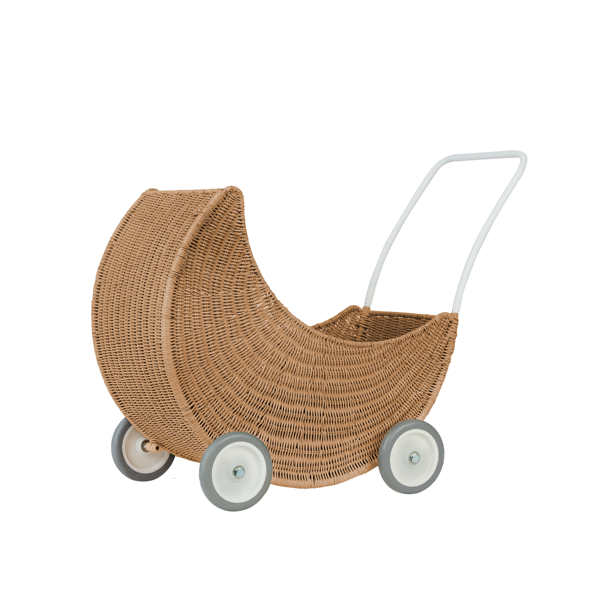 The natural rattan material adds a timeless touch, while the gentle curves and spacious design make it a perfect fit for pretend picnics, strolls in the park, and dreamy trips around the house. Whether it’s a stroll under the stars or a cozy nap on the go, the Moon Strolley is ready for endless adventures and heartwarming moments.