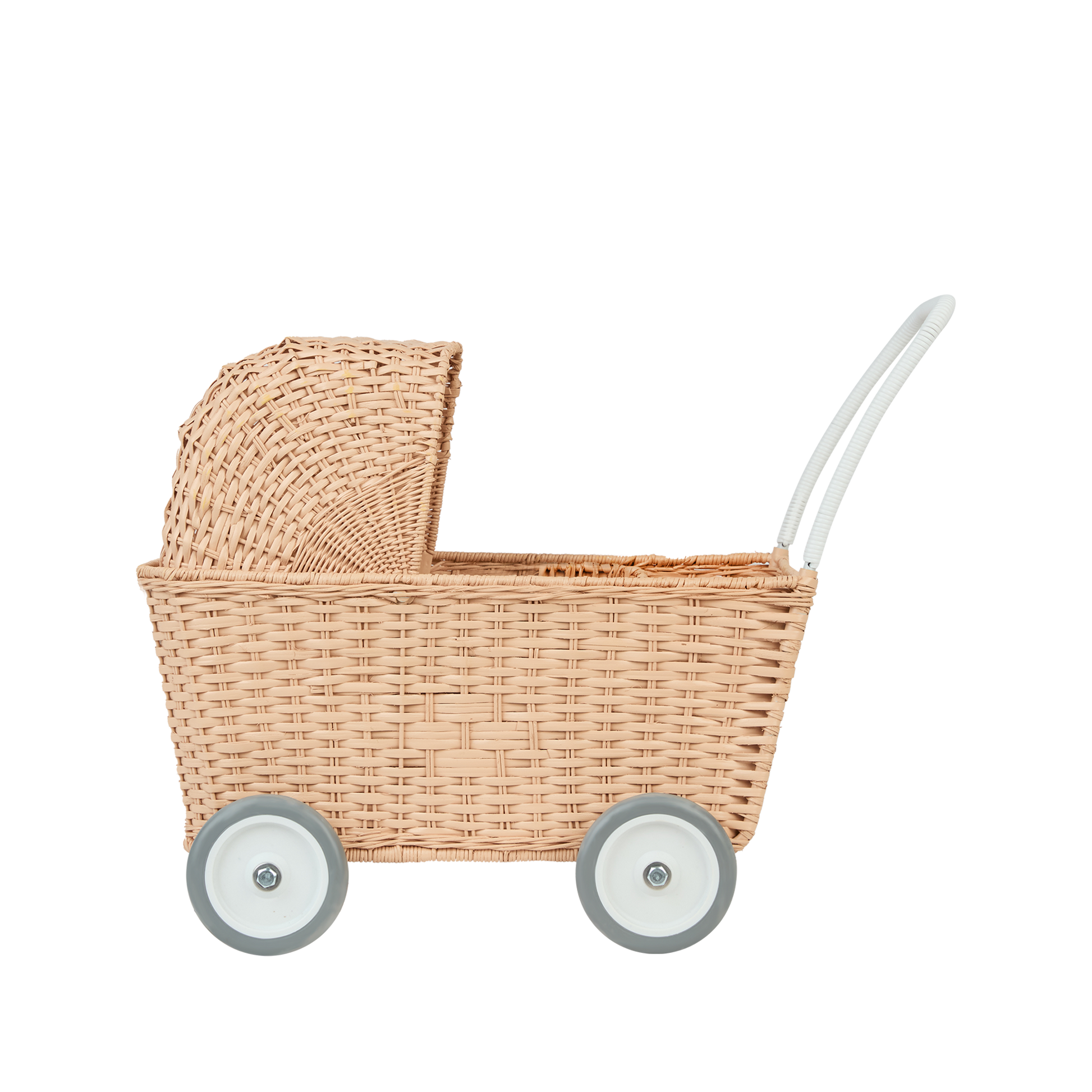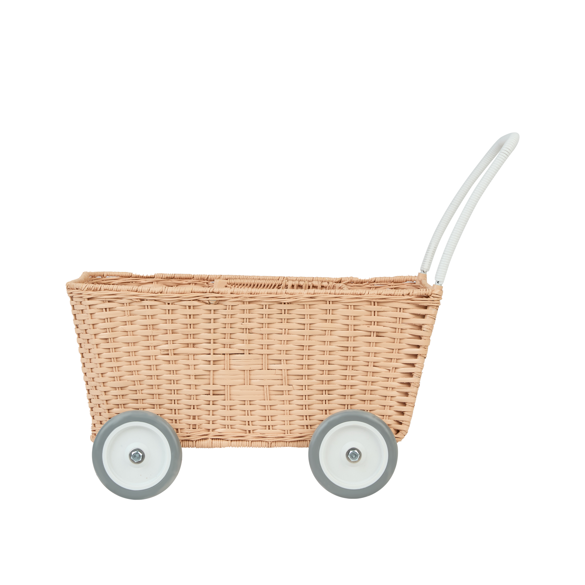 The Strolley is a revolutionary design in imaginative play. This hand-woven rattan basket on wheels switches from a pram to a shopping trolley, by just lowering the hood of the pram, all your little one needs is there imagination, and endless fun awaits.
