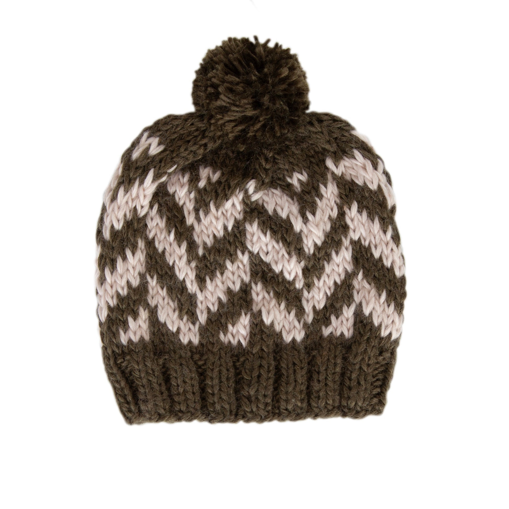 This super soft wool blend Acorn Tidal Beanie in Khaki has been designed in a chevron stripe pattern and a comfortable and stretchy 2x2 ribbing at the face. This Knit beanie features a cute pom pom on top. Made with 30% Wool and 70% Acrylic yarn that is breathable, very soft on the skin and also durable.