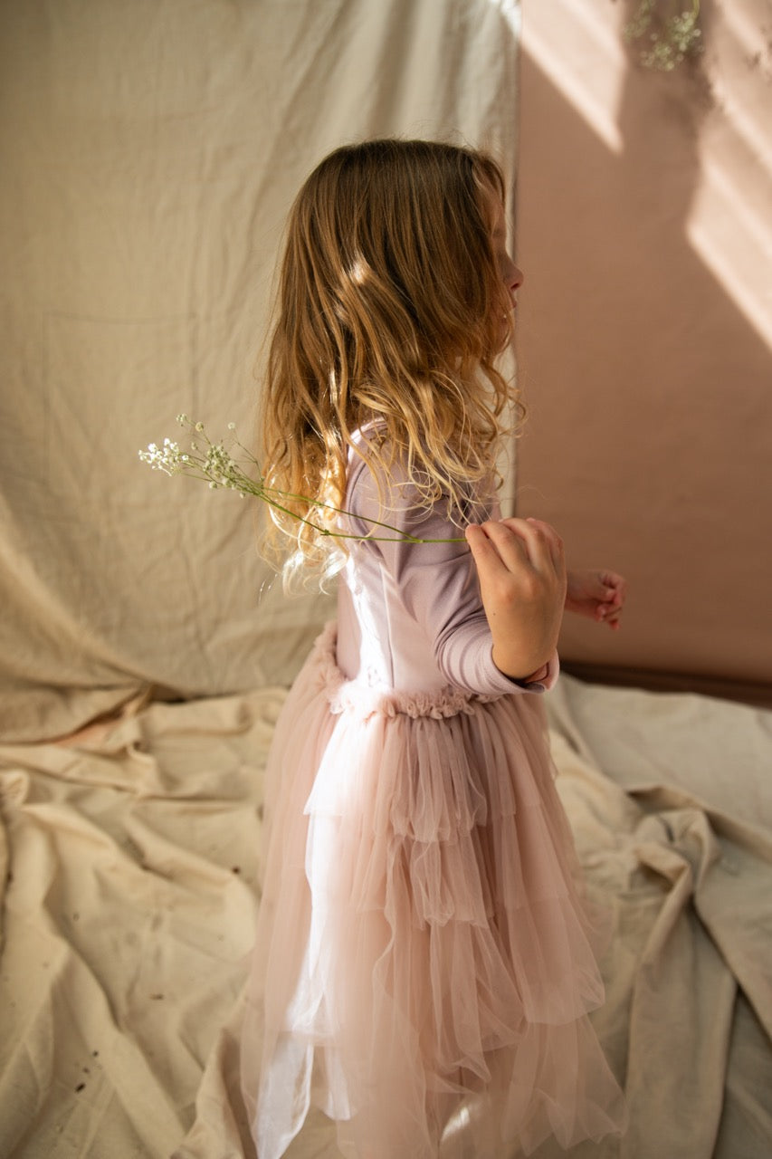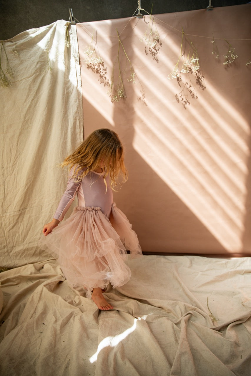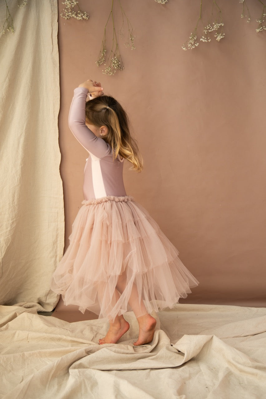 Introducing the stunning Dancing Queen Dress in Sherbet from Bella & Lace, a long sleeve leotard with layers of cascading tule to take your tiny dancer from ballet practice to special occasions. The fit is true to size with stretchy contrasting Sherbet nylon spandex material, scoop neckline and tiered tulle layered skirt in Bella & Lace's signature opec cut design.