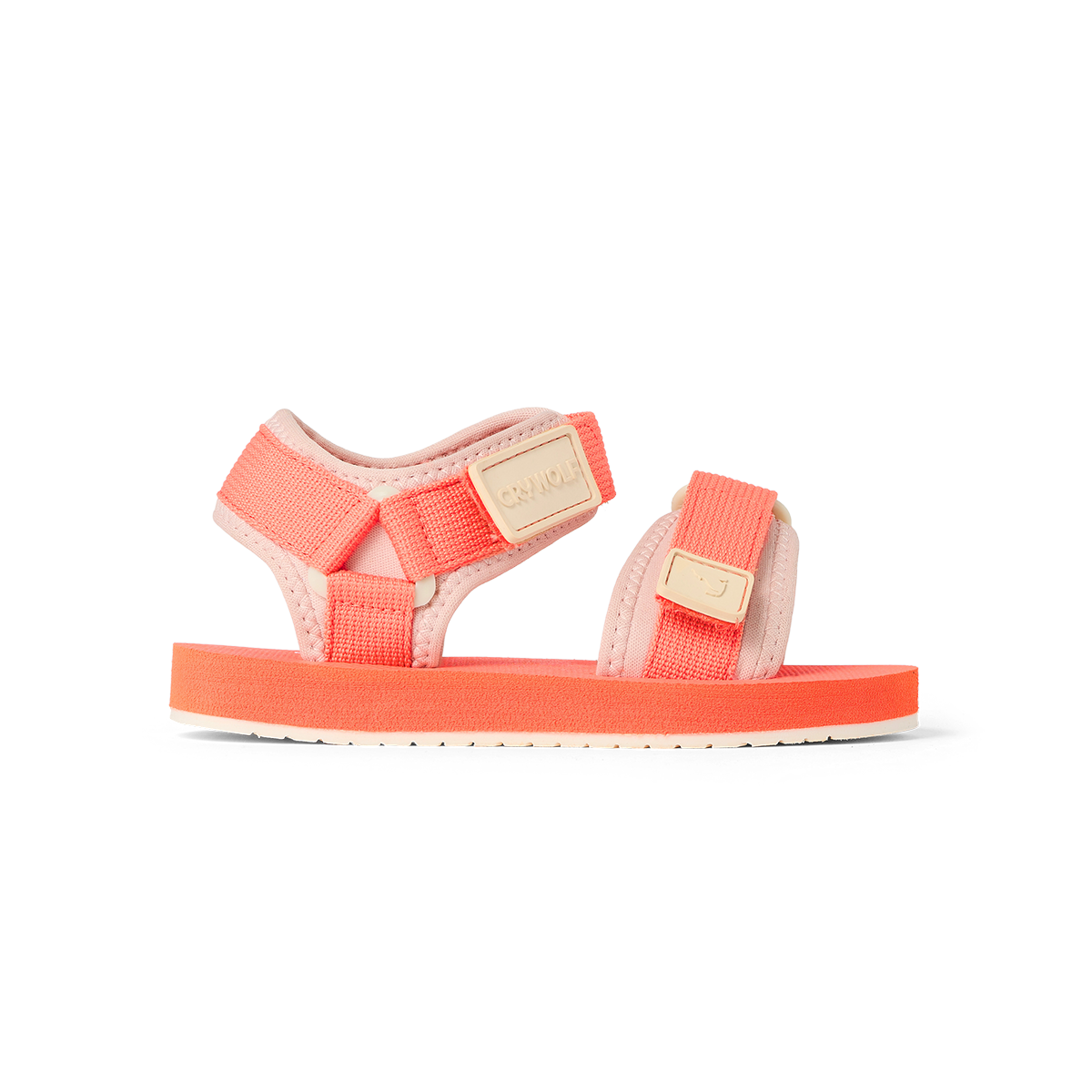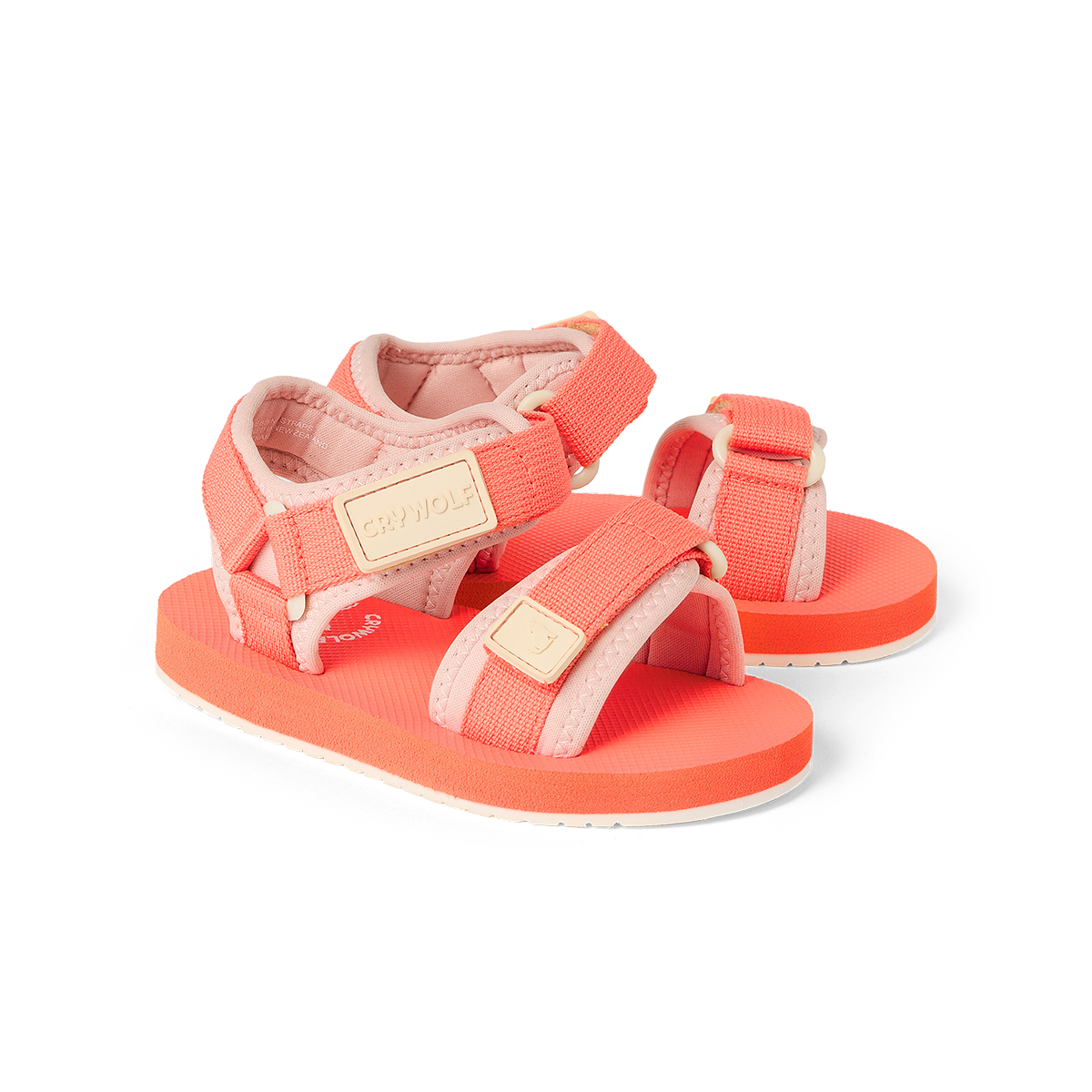 Get set for adventure this summer with the water-friendly Crywolf Beach Sandal in Coral. Comfortable, technical and uber cool, these Beach Sandals are packed with features to take kids from the street to the surf with comfort and style. With sustainability in mind, they are constructed from a durable, slip-resistant TPR rubber outsole, a recycled neoprene/nylon upper, and a recycled nylon webbing strap. The velcro closures enable ample adjustability and the cushioning EVA midsole ensures comfort and flexibility.