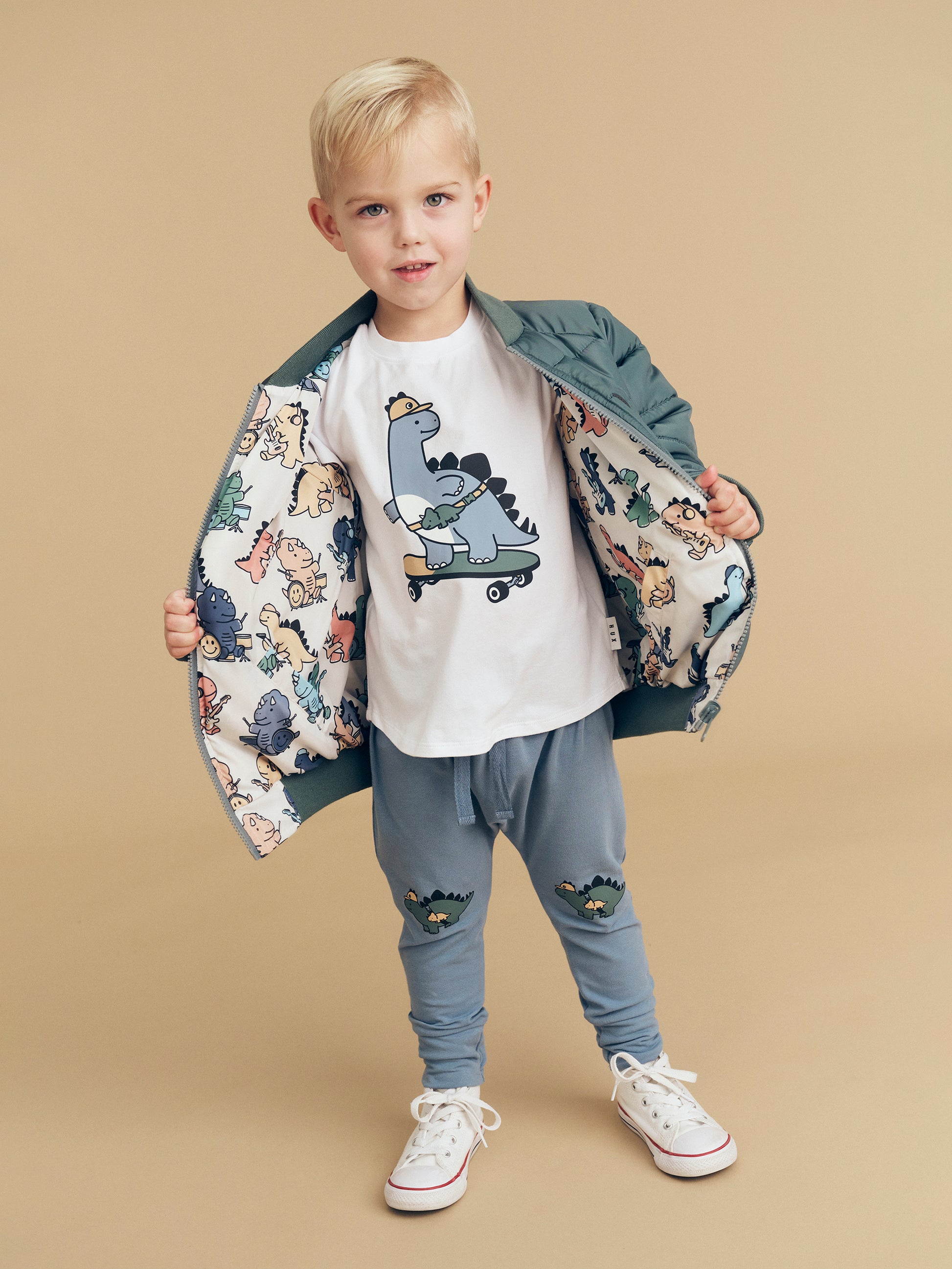 Huxbaby Adventure Dino Drop Crotch Pant Dino Blue