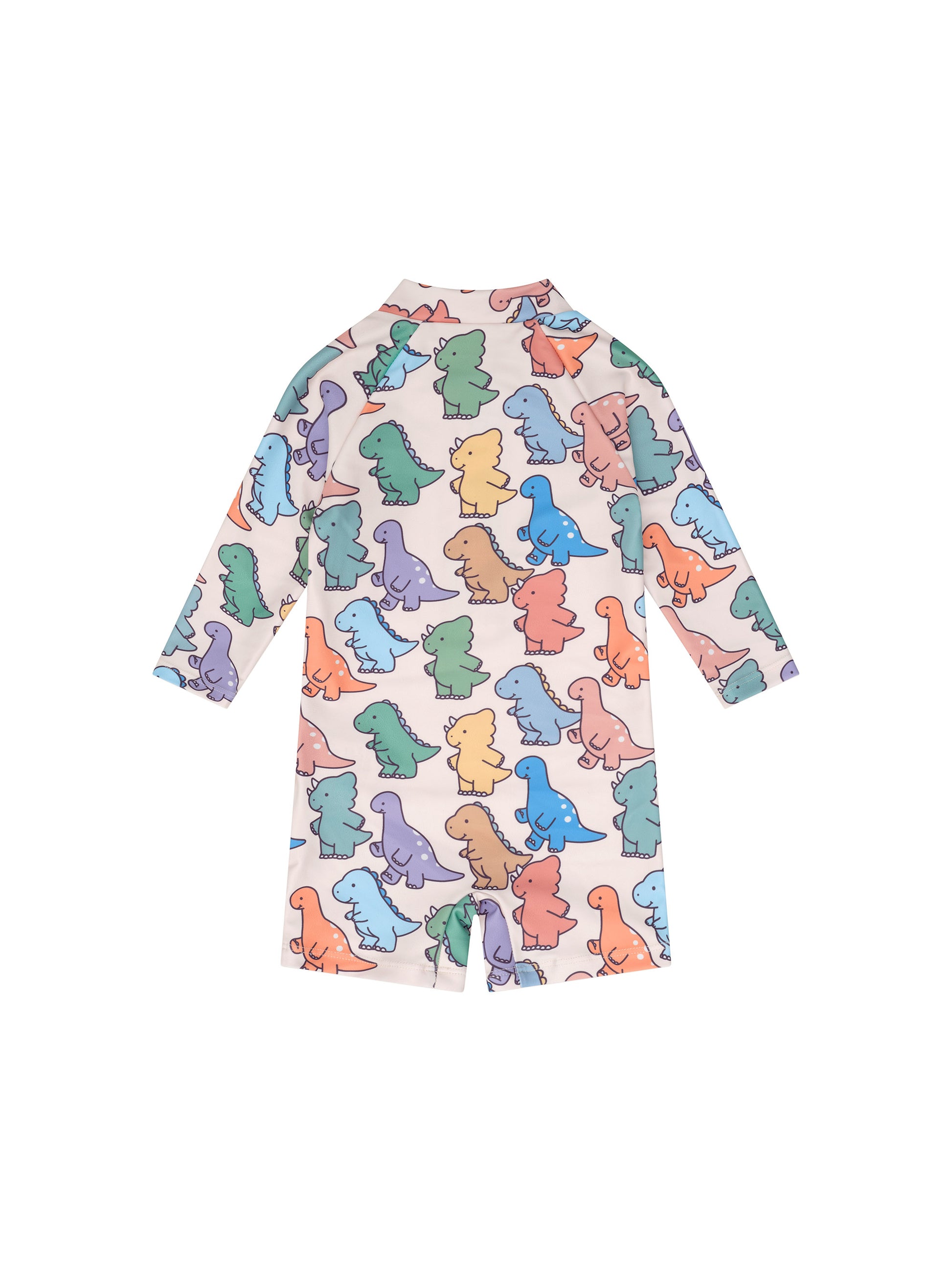 - One piece long sleeve zip shortie rashsuit with all over dino play print
