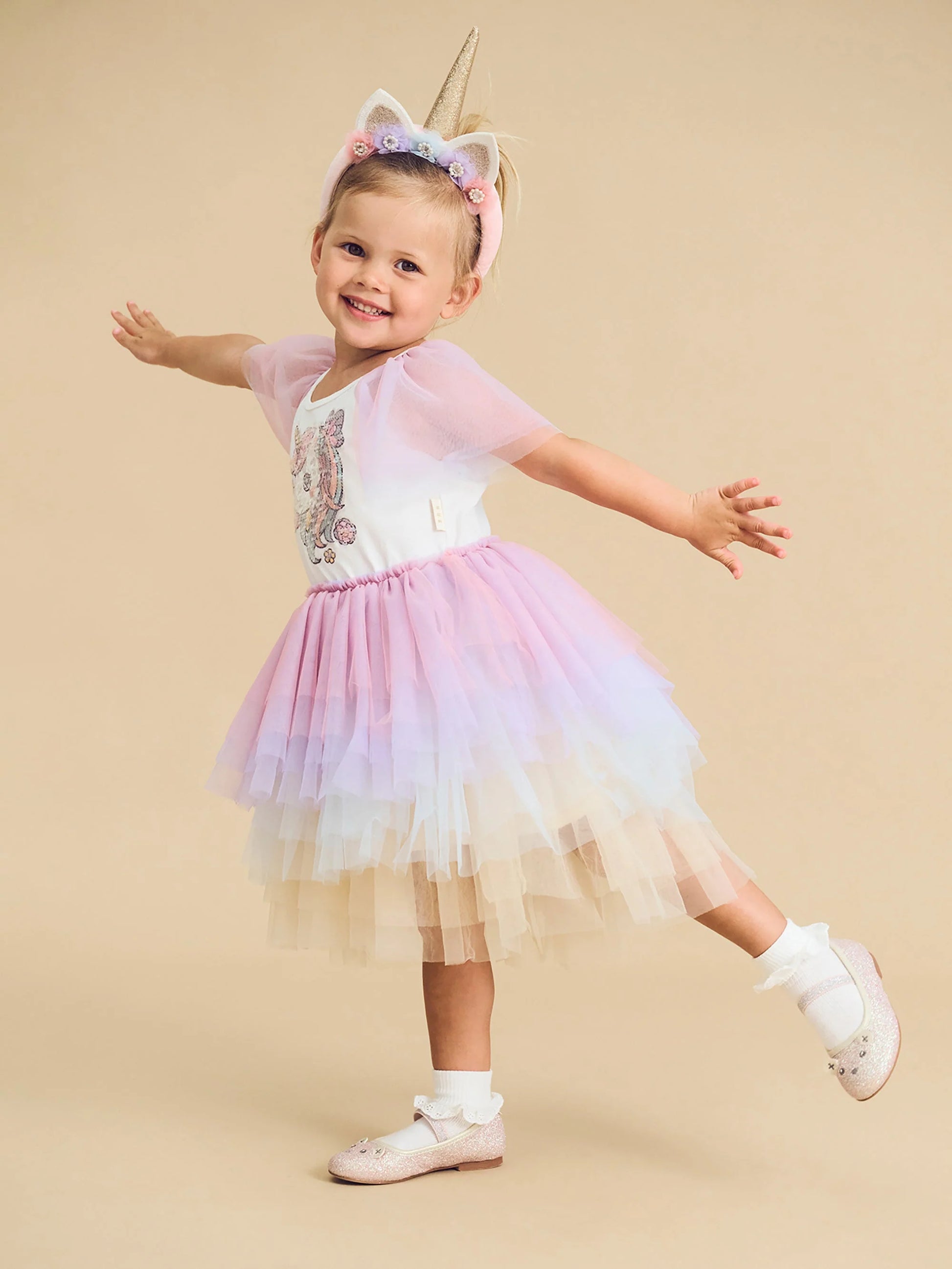 Huxbaby Unicorn Tiered Rainbow Party Dress