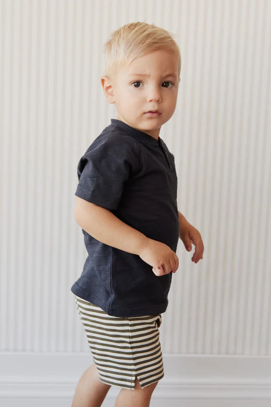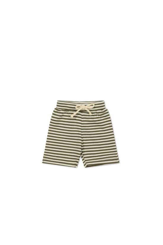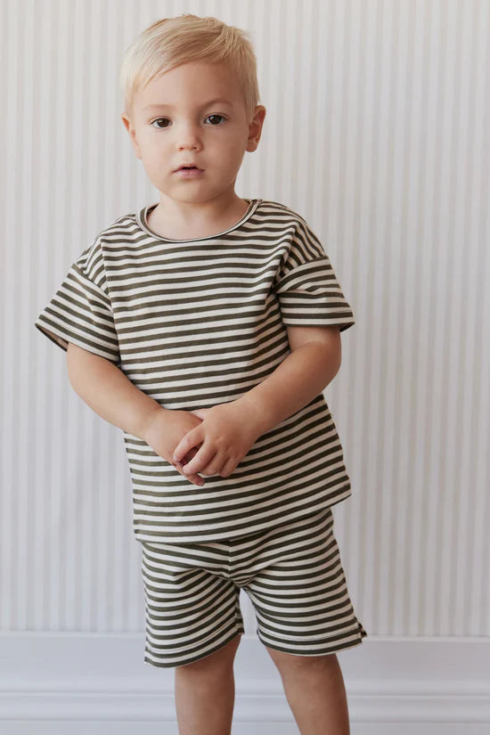 Jamie Kay Pima Cotton Marley Short Narrow Stripe Deep Olive/Soft Clay