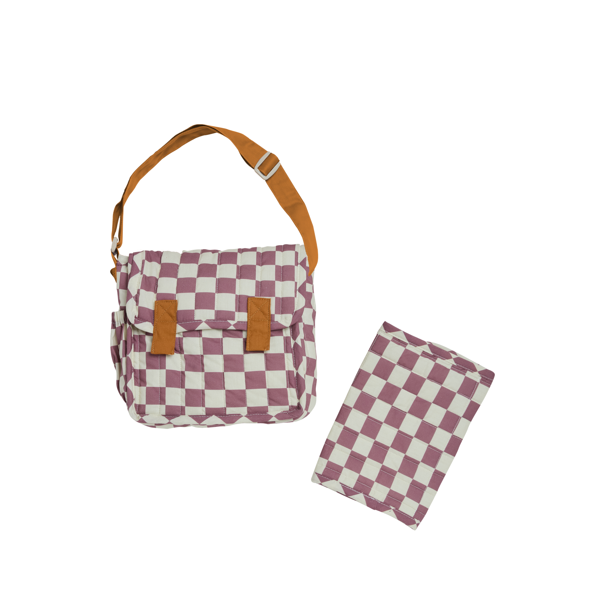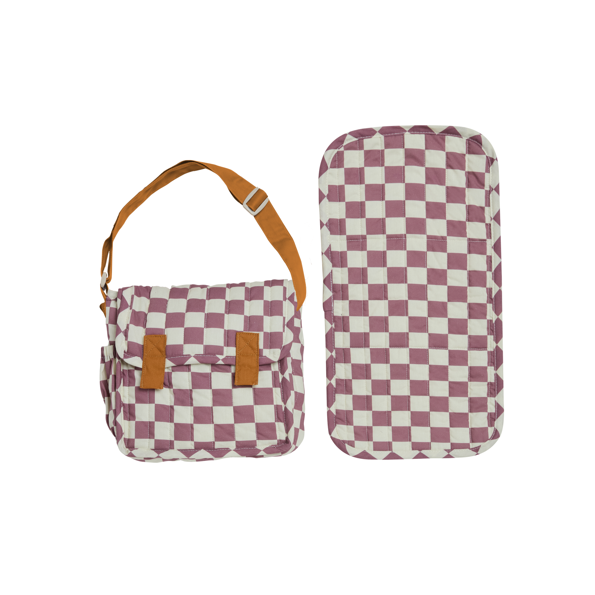 Olli Ella Carrie Convertible Changing Bag and Mat Plum Check