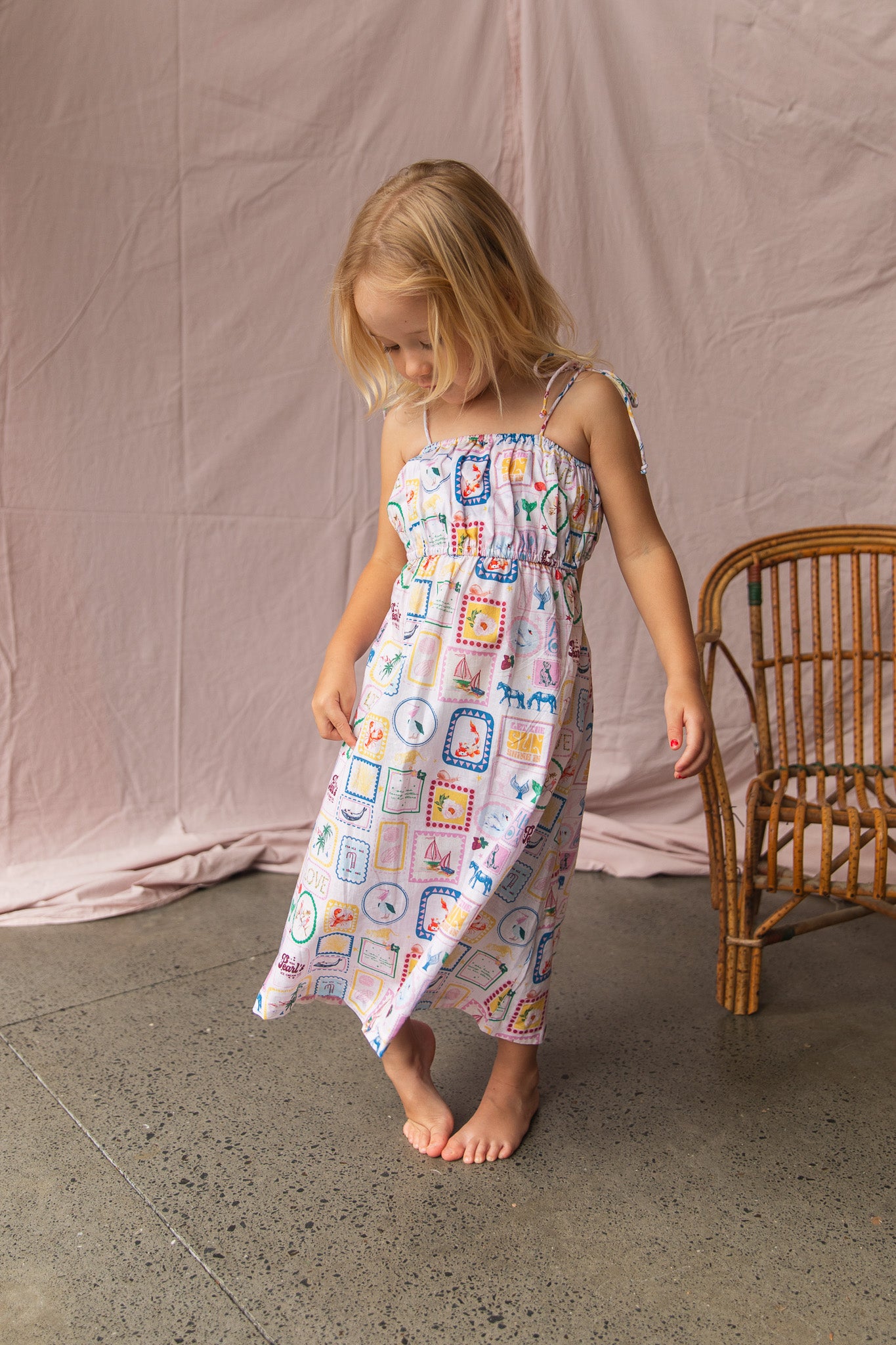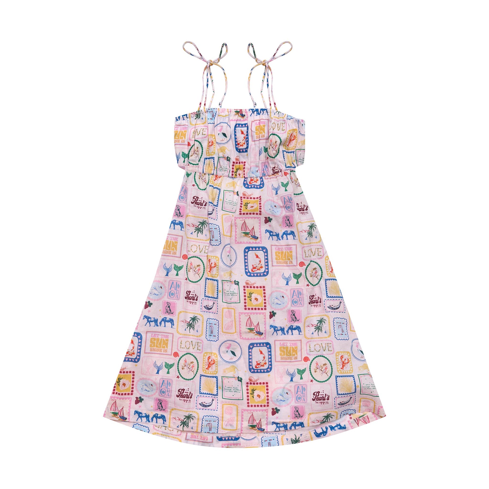 Catch the summer breeze with an open tie back and spaghetti straps, perfect for beach days and cafe catch ups. Made from soft 100% cotton voile in our A Love Letter Print.