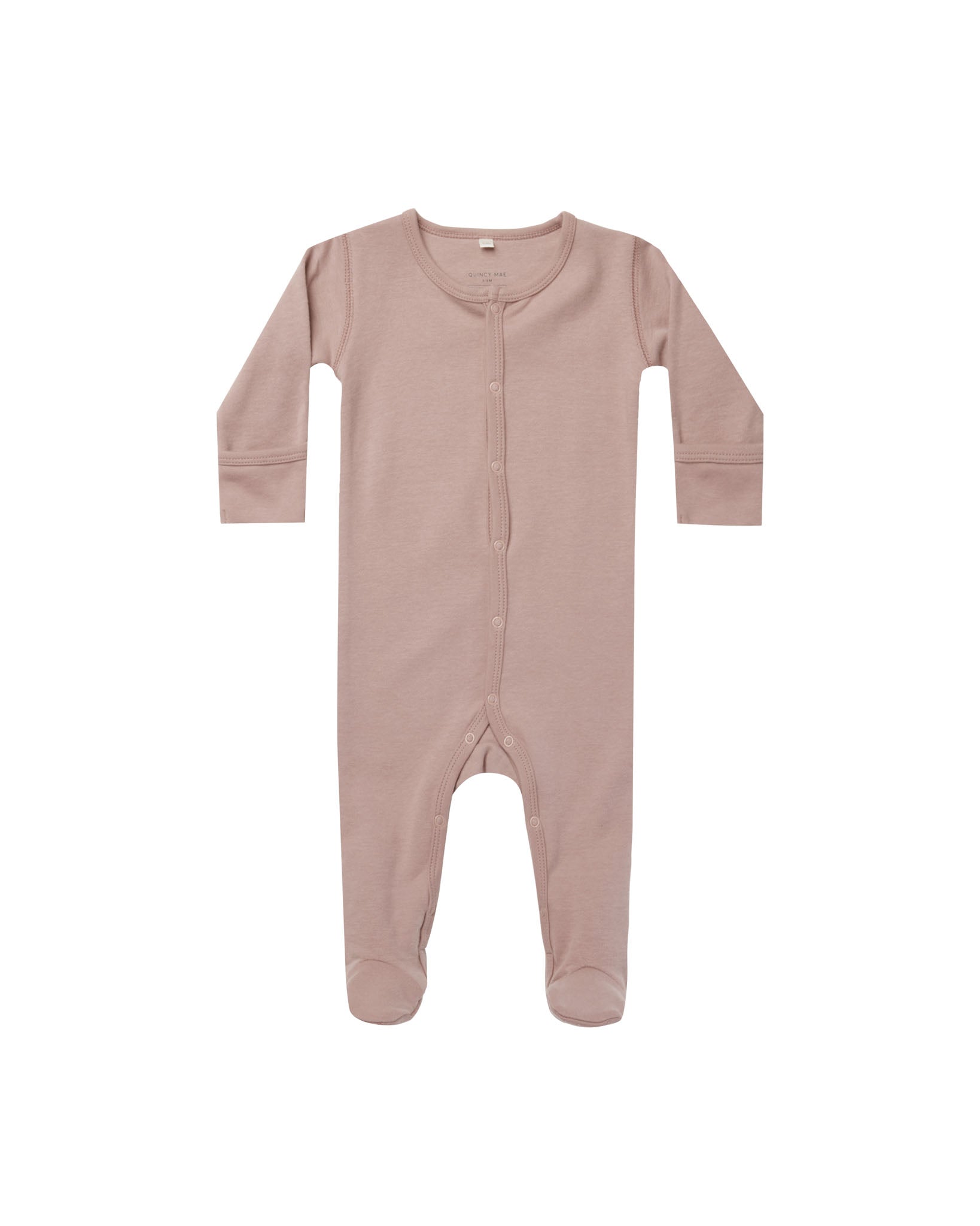 The popular Full Snap Footie in Mauve from Quincy Mae is a must have essential. Crafted from a velvety soft organic brushed jersey fabric and featuring long sleeves and snaps from neck to foot for easy dressing, this practical piece has been designed for comfort and style.