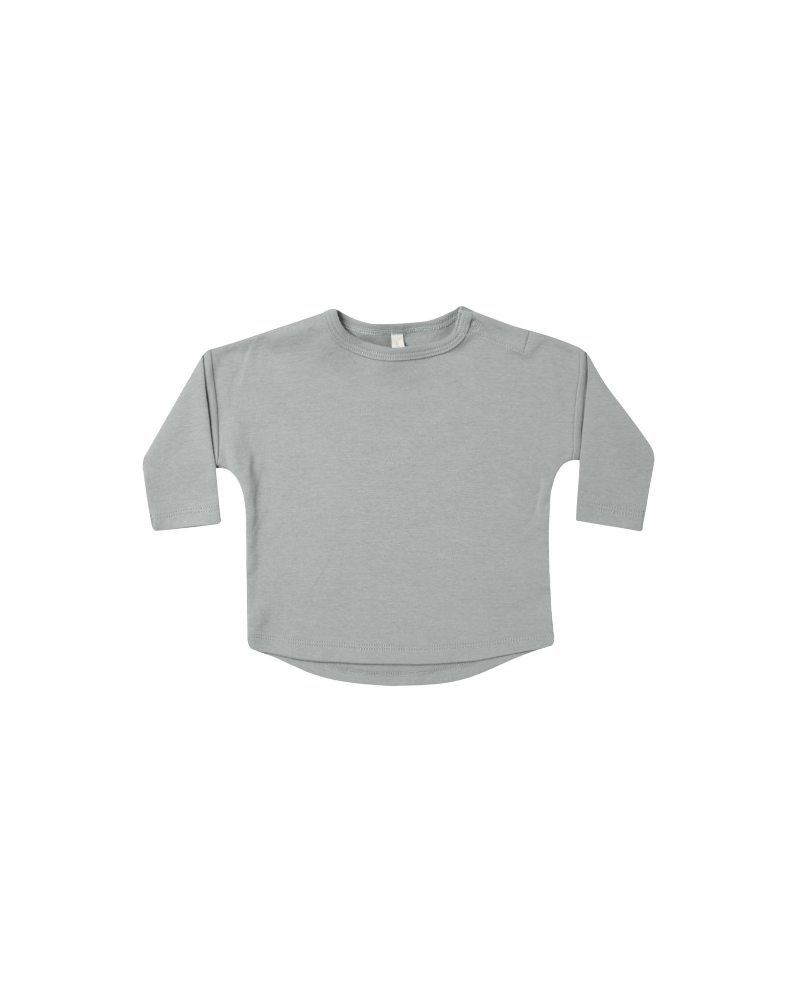 A perfect choice for comfortable and stylish dressing, the Quincy Mae Long Sleeve Tee in Dusty Blue is a sweet long sleeve tee crafted from 100% organic cotton. The fabric is velvety soft and ideal for sensitive skin, featuring a snap closure on the shoulder for easy dressing. Machine washable and easy to care for, it is a great addition to any wardrobe.