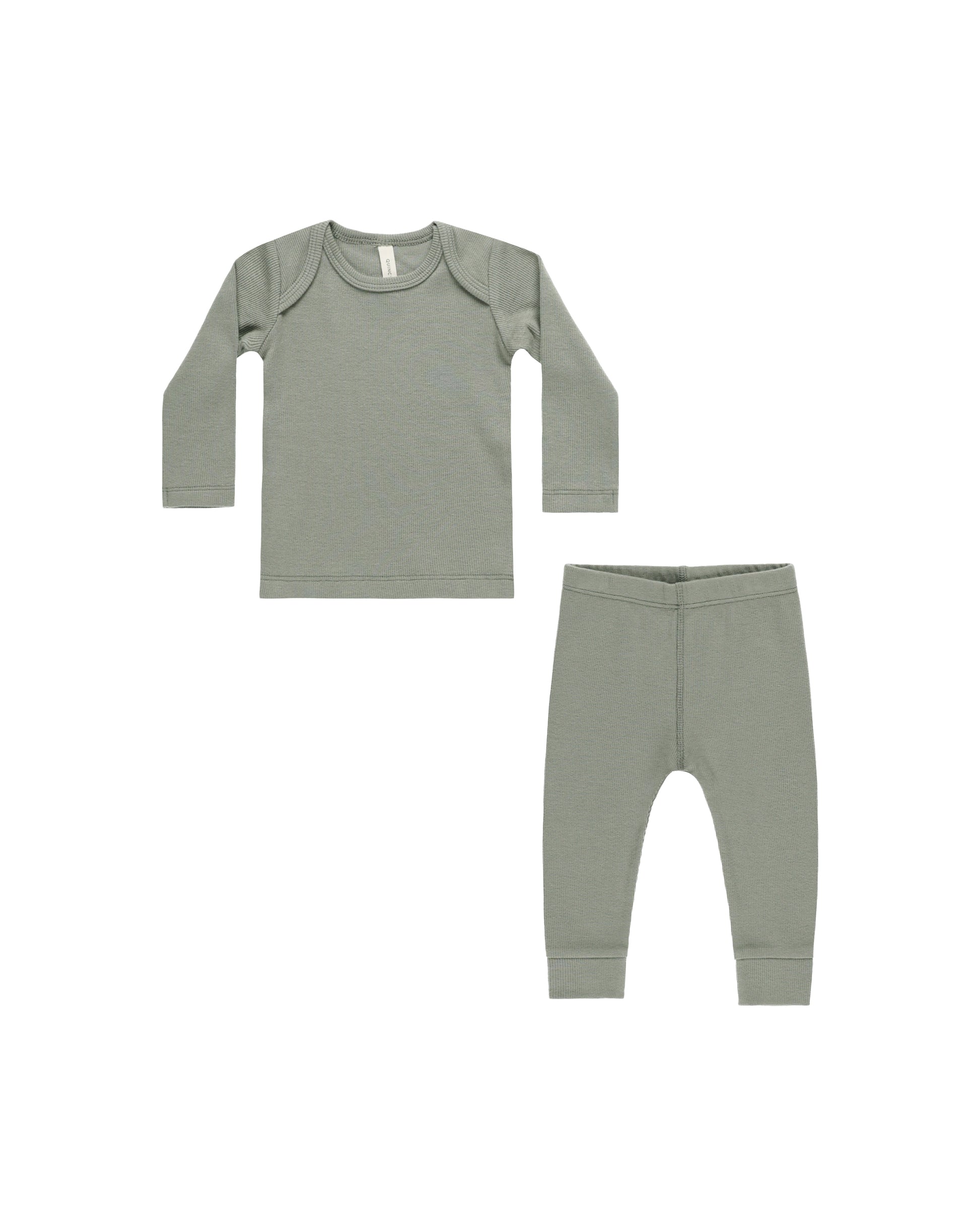 Quincy Mae Ribbed Tee + Legging Set Basil