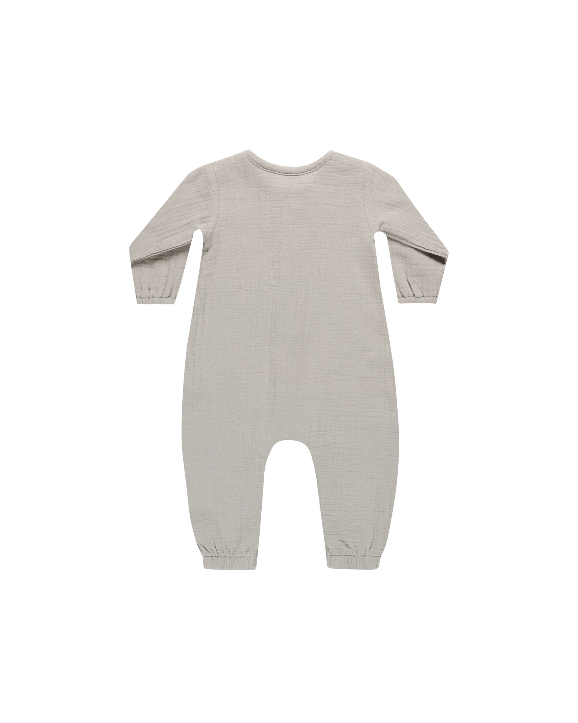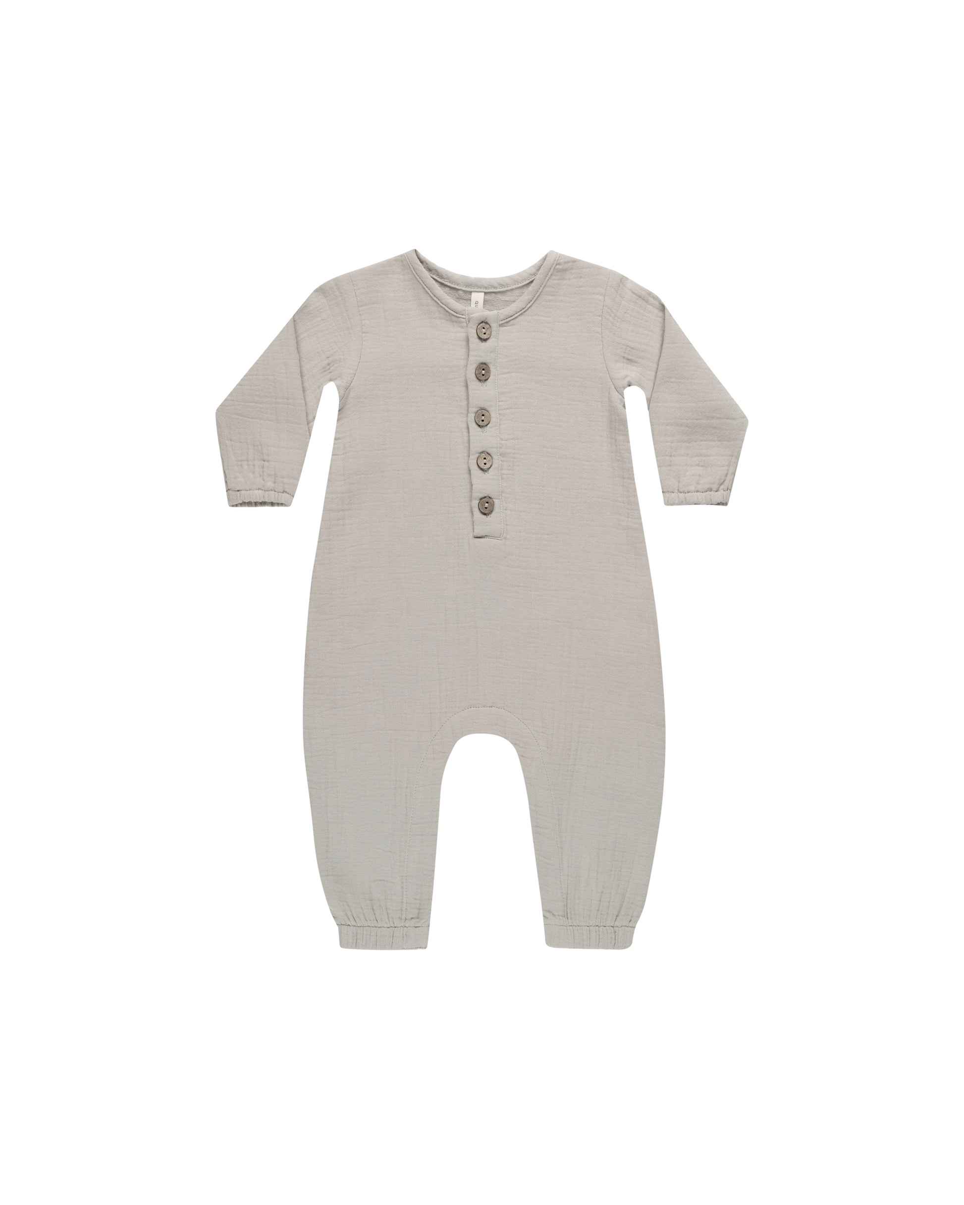 Introducing the Quincy Mae Woven Jumpsuit in Fog, the perfect combination of style and simplicity. This lightweight gauze jumpsuit features coconut buttons and hidden snaps for easy changing, while elastic sleeves and leg openings provide the perfect fit. A must-have for any little one's wardrobe.