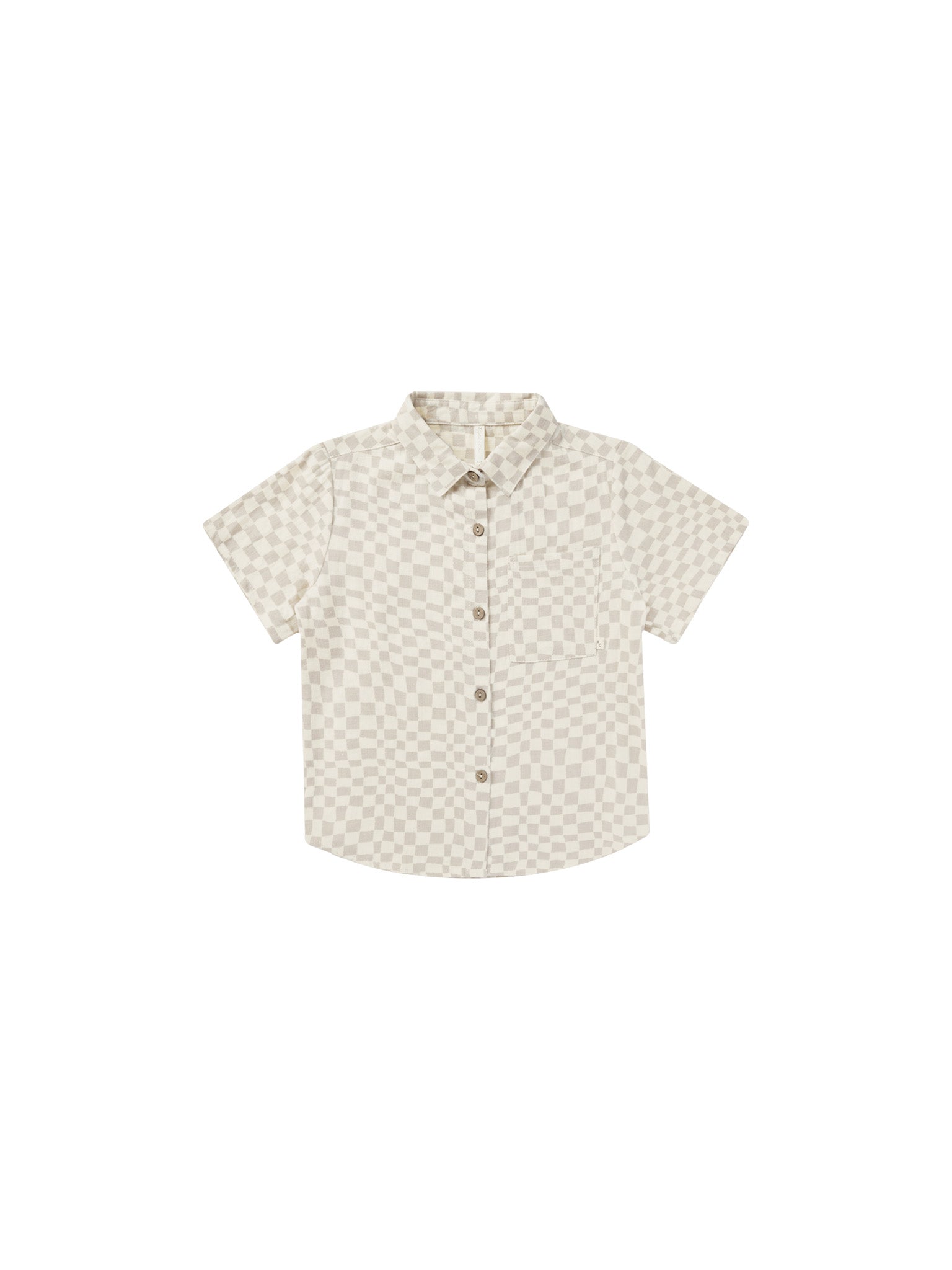 Rylee + Cru Collared Short Sleeve Shirt Dove Check