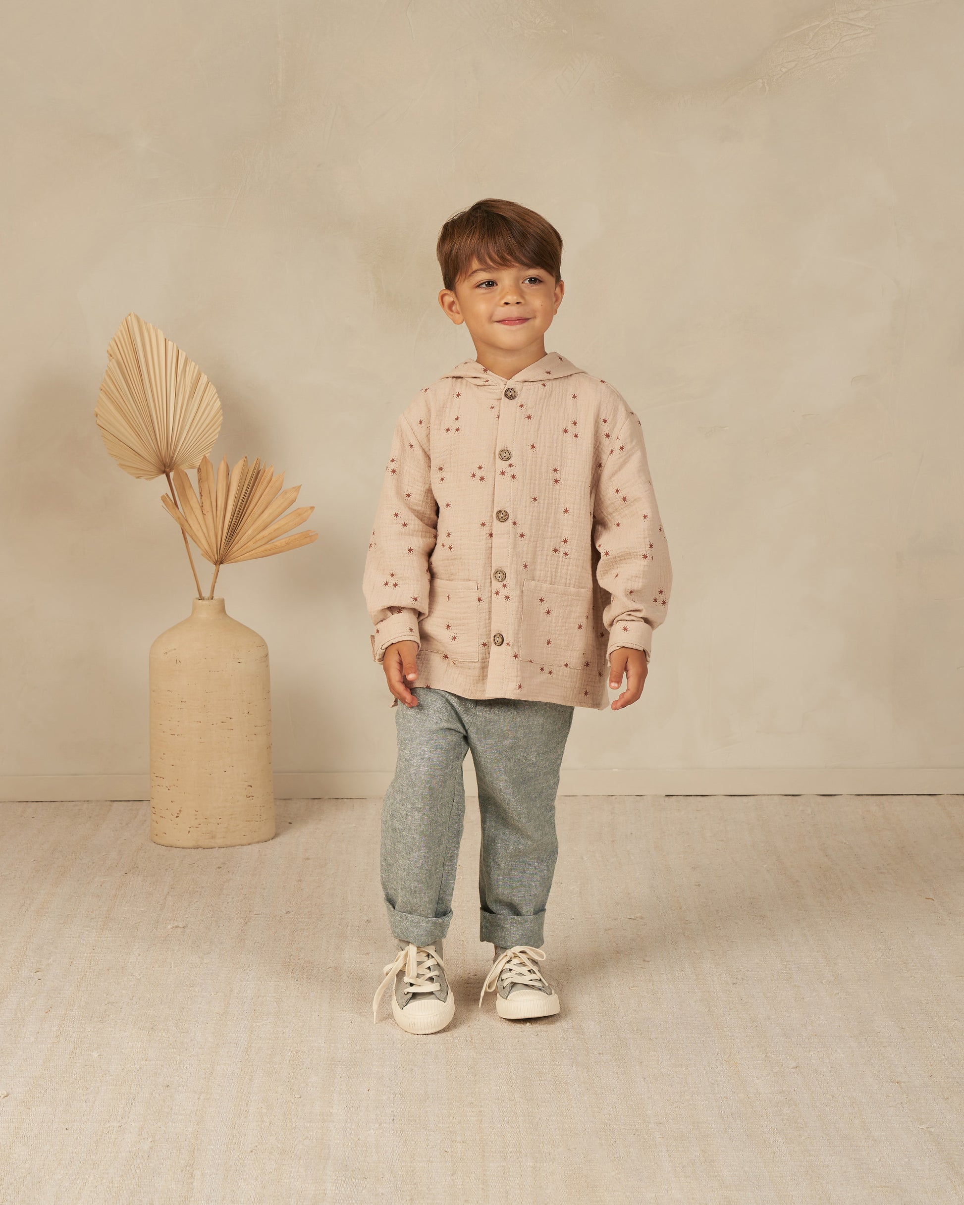 The Rylee + Cru Kalen Pant in Heathered Indigo offers both style and comfort. With an elastic waist, functional drawstrings, with button and zipper closure, these pants are practical and versatile. Made of a linen and viscose blend, they are easy to care for with machine wash and tumble dry options.