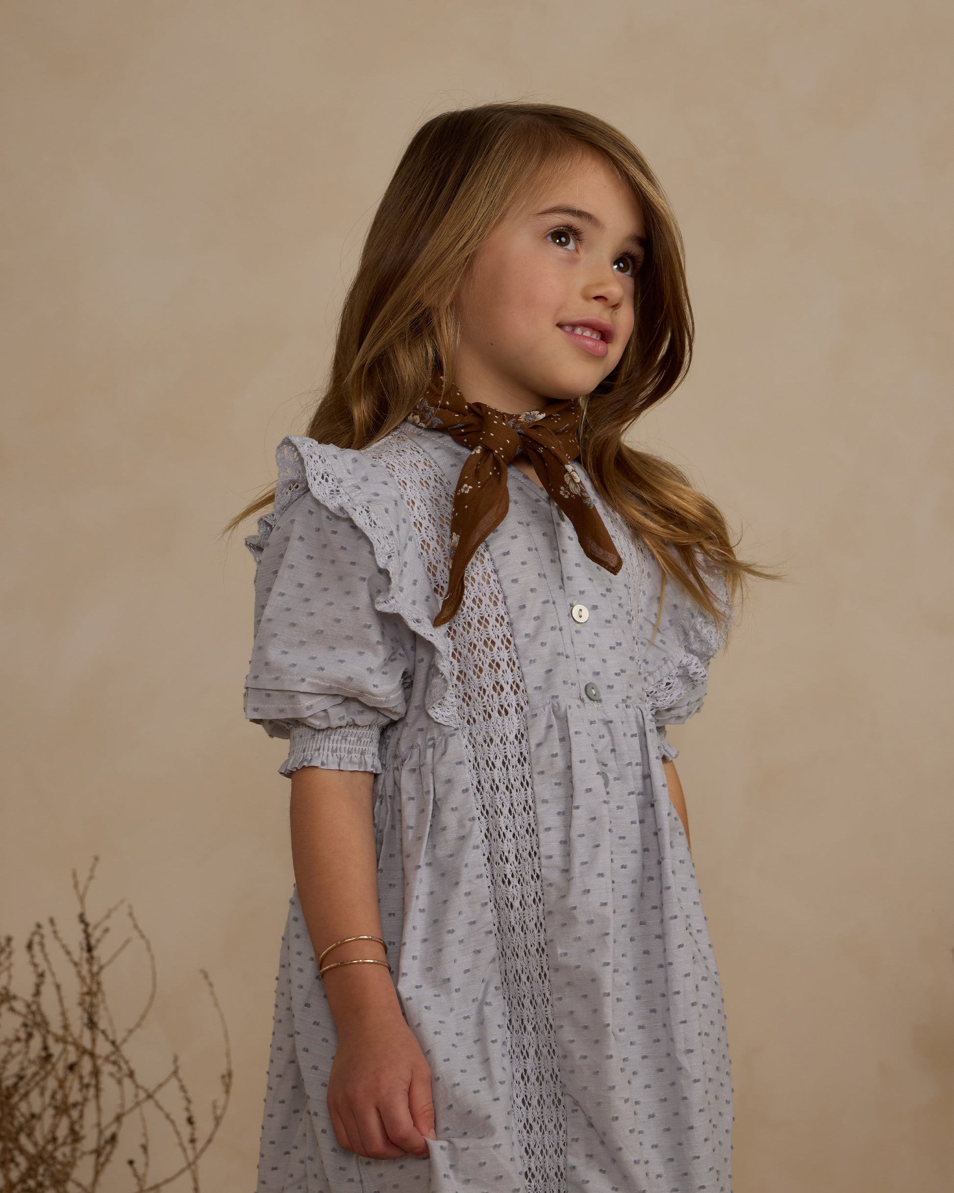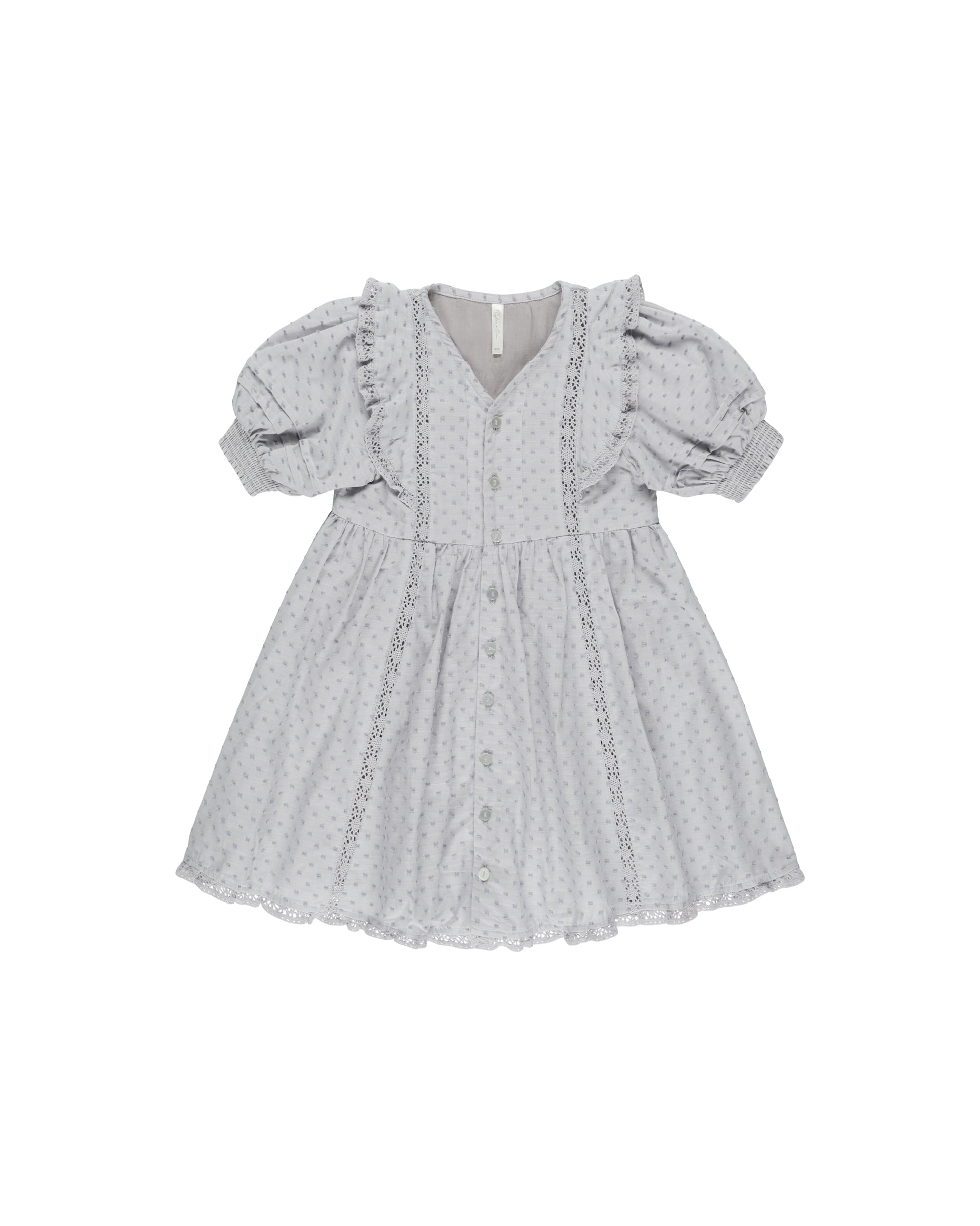 She can twirl into summer wearing the adorable Lana Dress in Dusty Blue from Rylee + Cru, showcasing puff sleeves and gorgeous lace trim details. This beautiful mid length dress features a button-down front and a playful collar perfect for layering or wearing on its own.