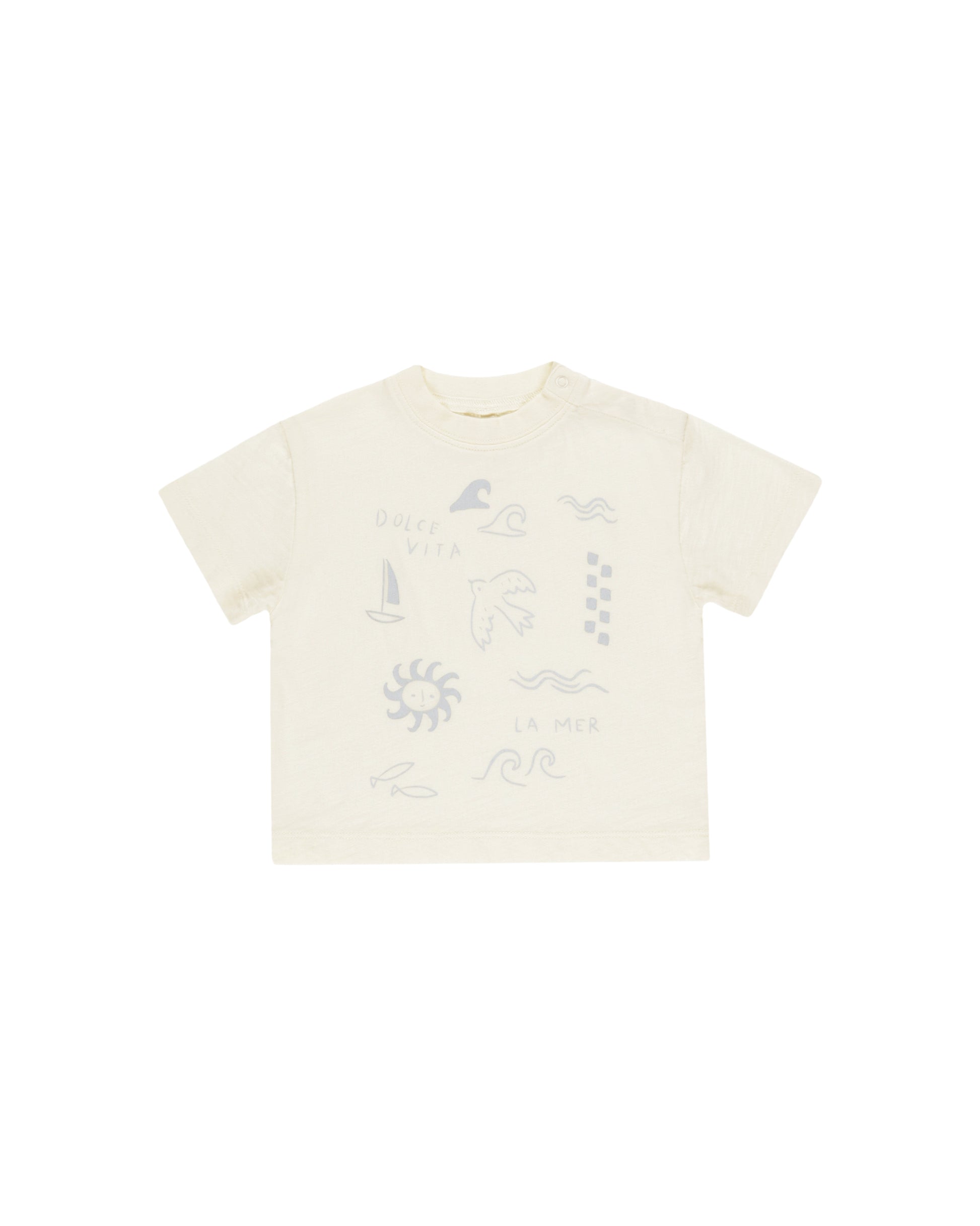 Relaxed fit tee made from our soft cotton jersey. Shoulder snaps included in sizes 0-3m - 18-24m for easy dressing.