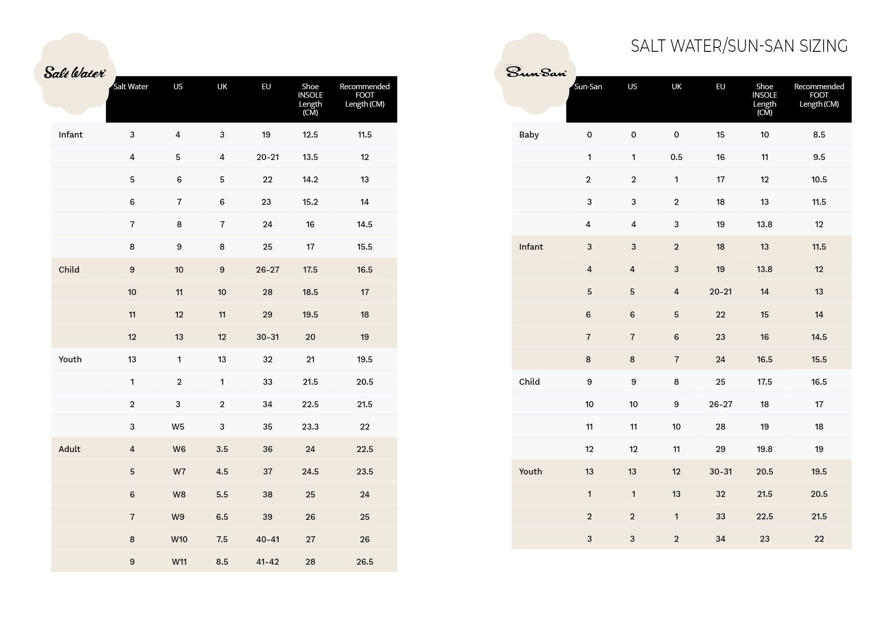 As the name suggests the Saltwater Sandals are made for water! They mould to the foot shape & become softer, with repeated wear and exposure to water. Making them perfect for the beach, splashing in puddles & doing all things kid!