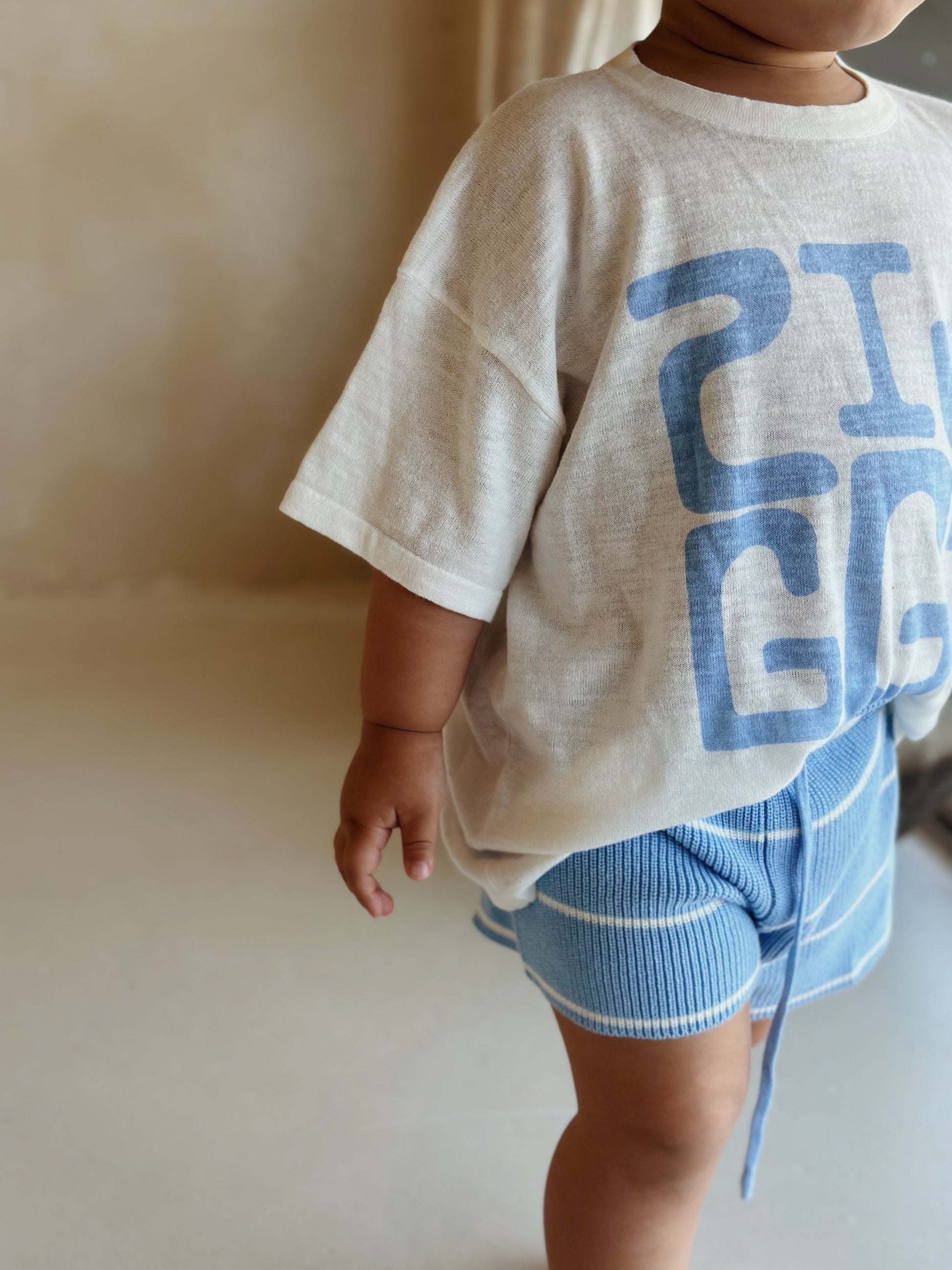 Knitted river stripe shorts featuring an elastic waist and functional drawstring. Mix and match with items from our River + River Stripe Spring Collection.