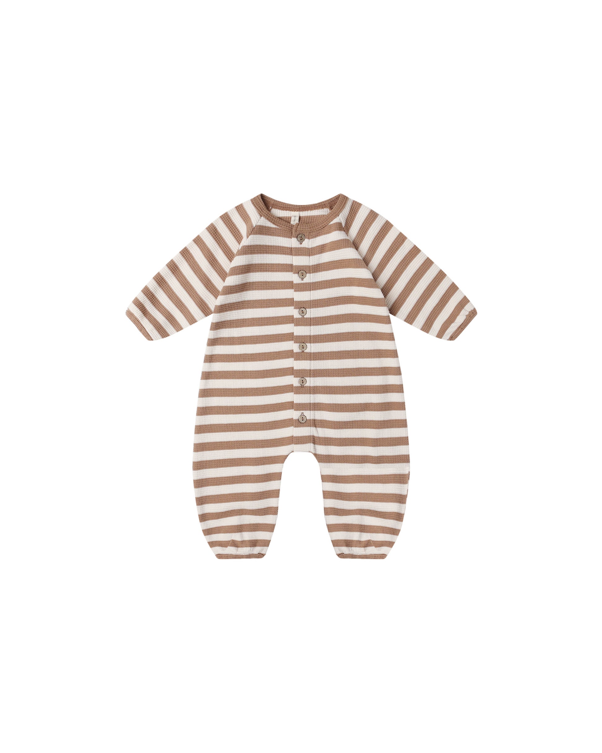 Quincy Mae Waffle Long Sleeve Jumpsuit Harvest Stripe
