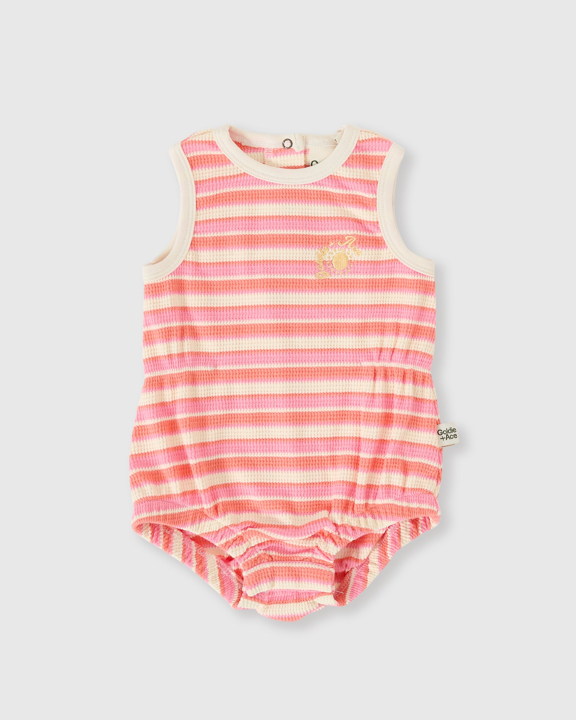 Goldie + Ace Watermelon Stripe Bubble Romper Pink / Peach