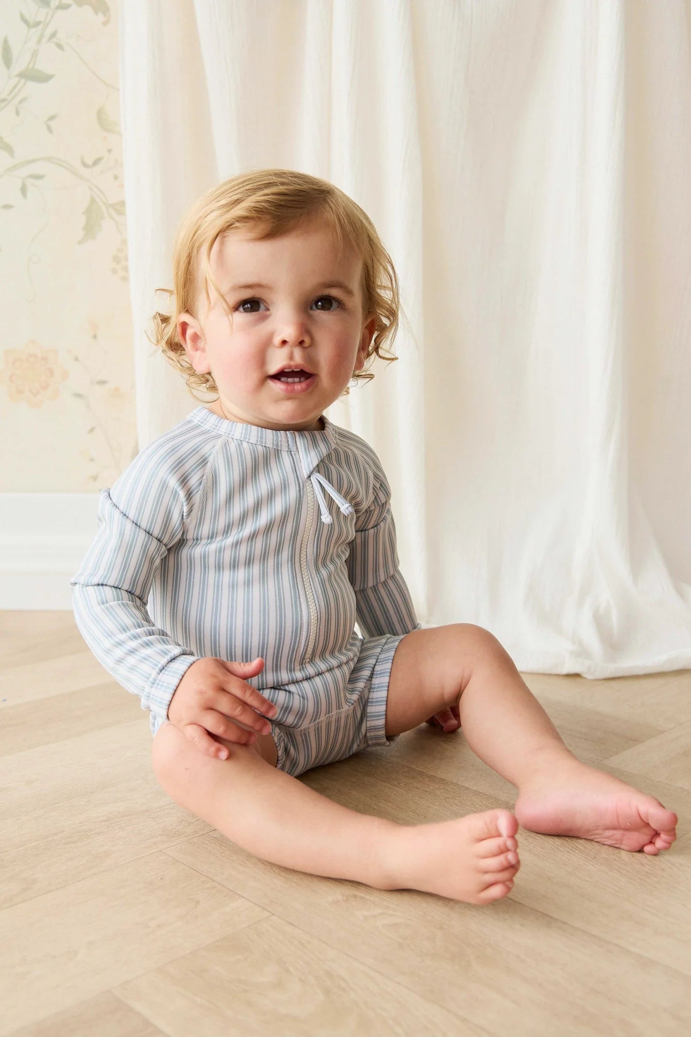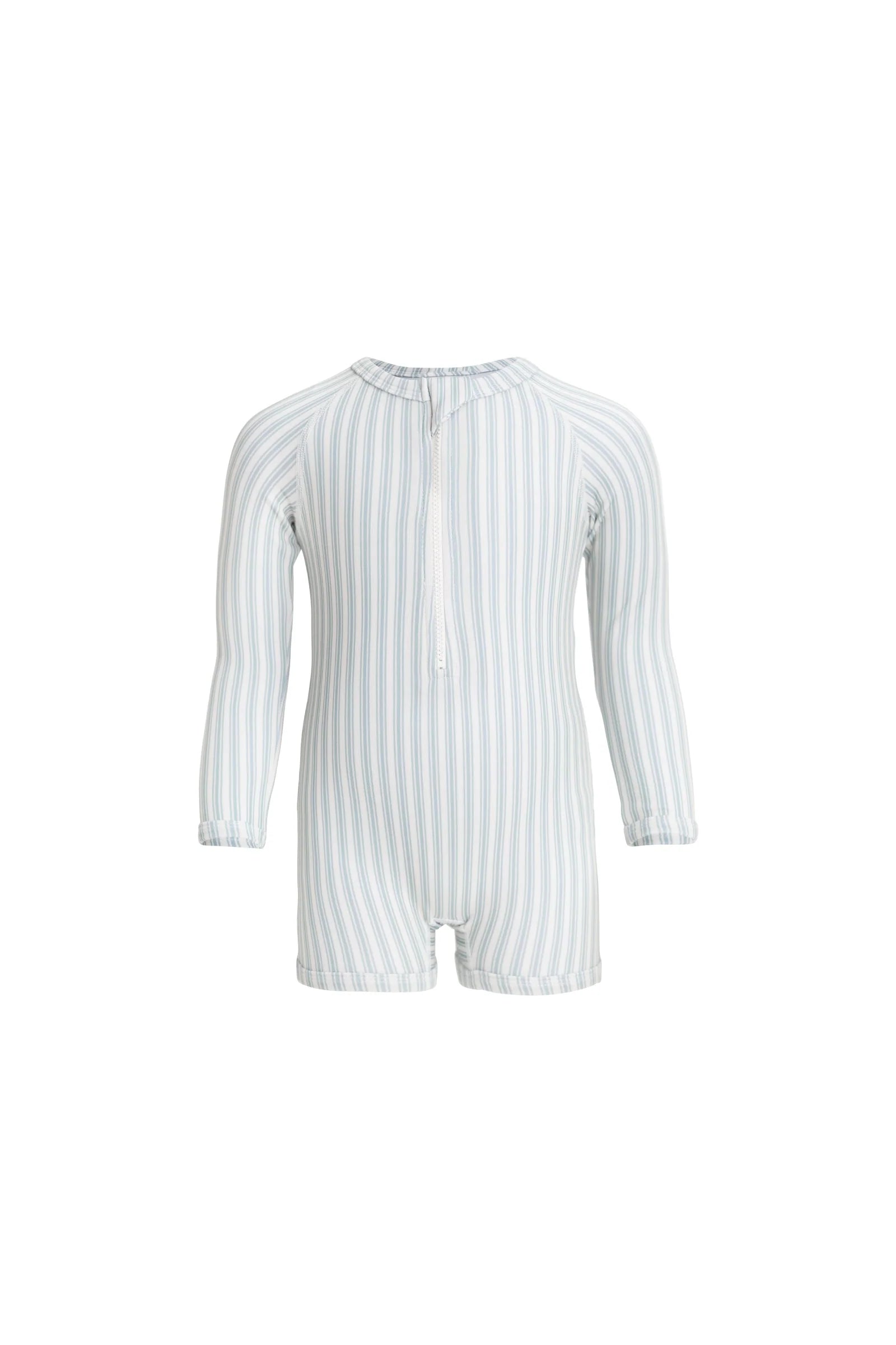 Make a splash in style with the Florian Zip Swimsuit in Variegated Stripe Cenote - a vibrant, ocean-inspired piece designed for sunny adventures. With its playful stripe pattern and practical zip-front, this swimsuit offers both charm and functionality for your little one’s beach or pool days.