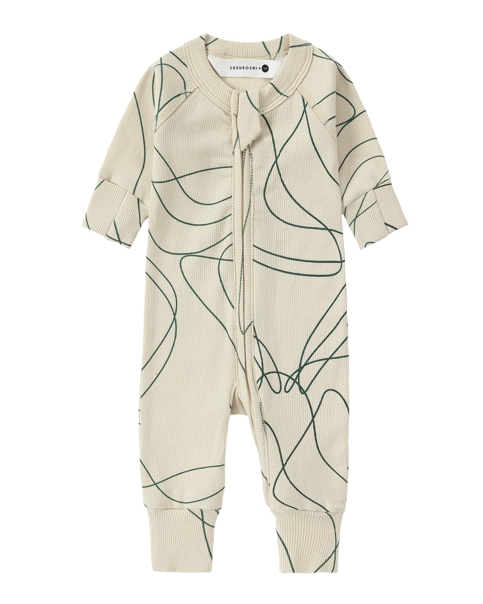 Susukoshi Zip Growsuit Long Sleeve Ripple / Pine