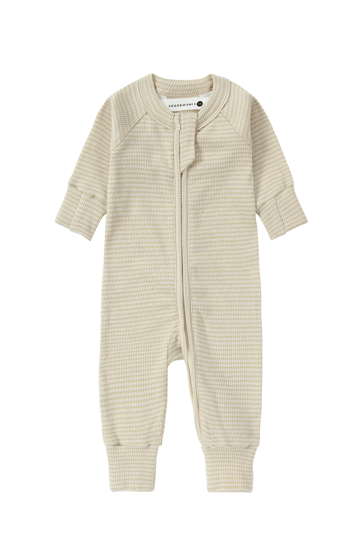 Baby Zip Suit is an essential part of a baby's wardrobe. Designed to be fitted on the body and covering the tiny feet. Fast to put on and off with the two way zip. The material is light and can be used for both summer and winter.