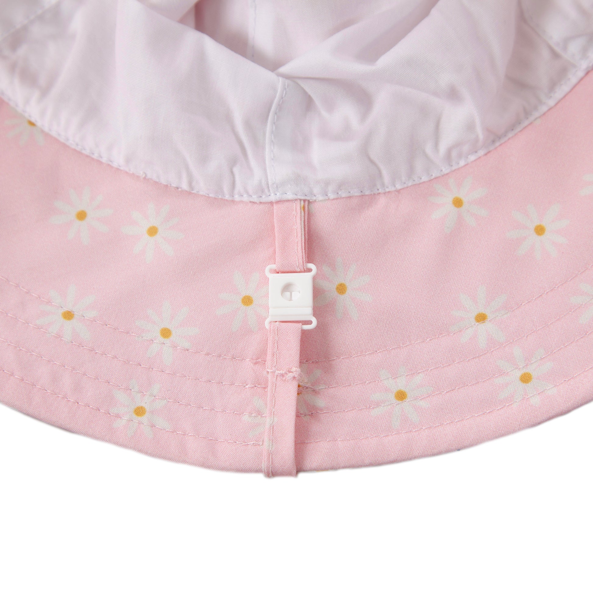 Wide brim sunhat with a sweet pink daisy print design by Jacinta Weir from Two Little Ducklings.
