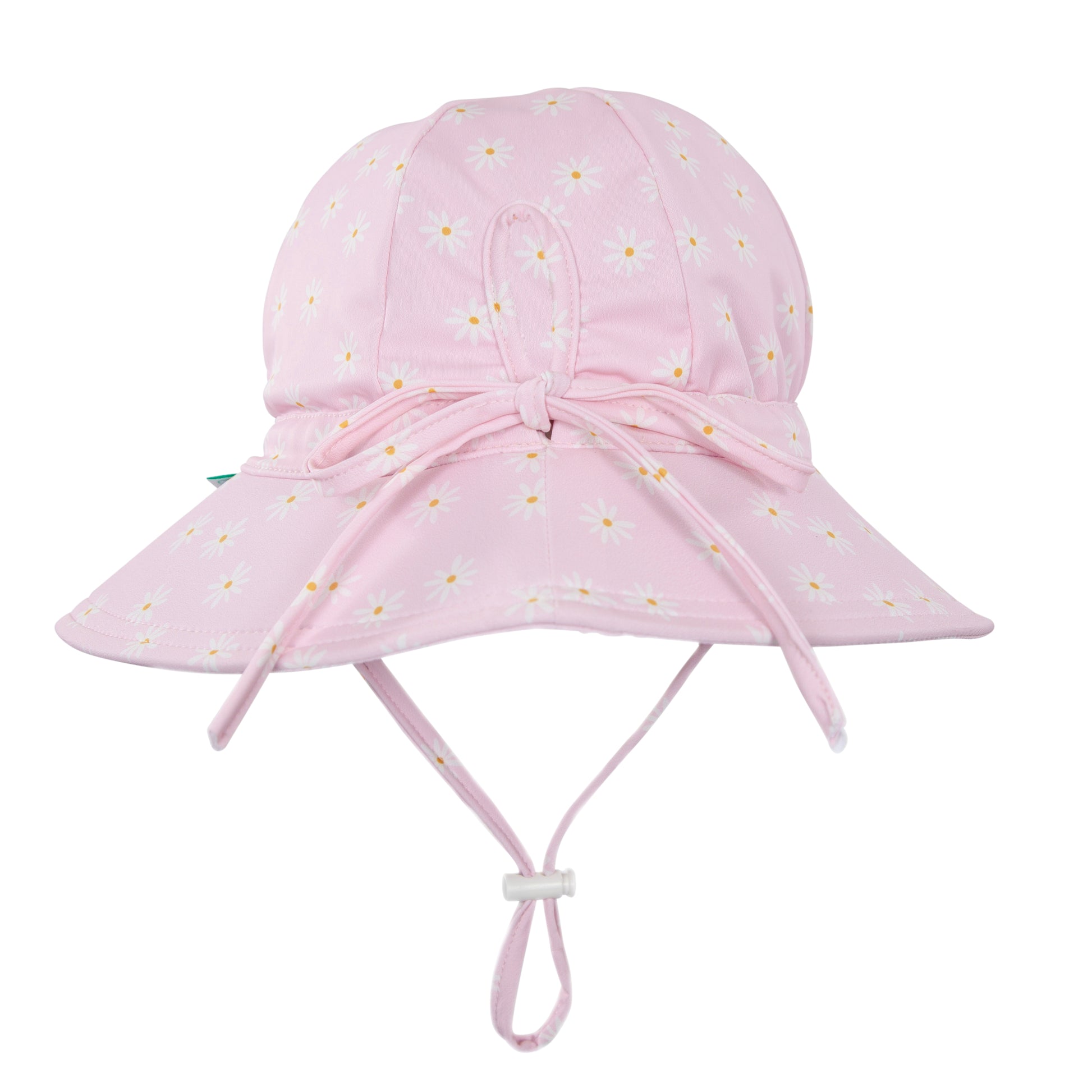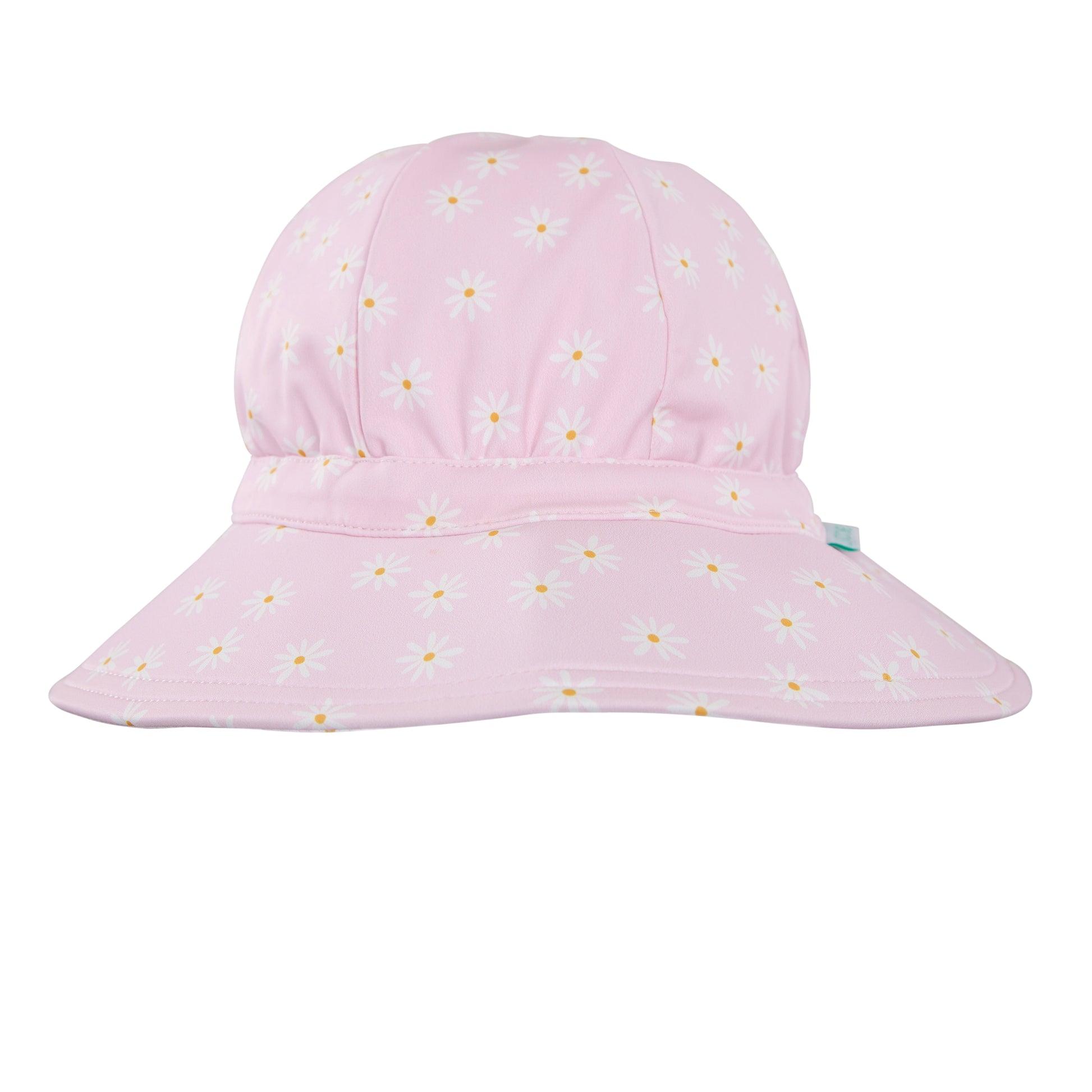 Swim hat with a sweet pink daisy print design by Jacinta Weir from Two Little Ducklings.