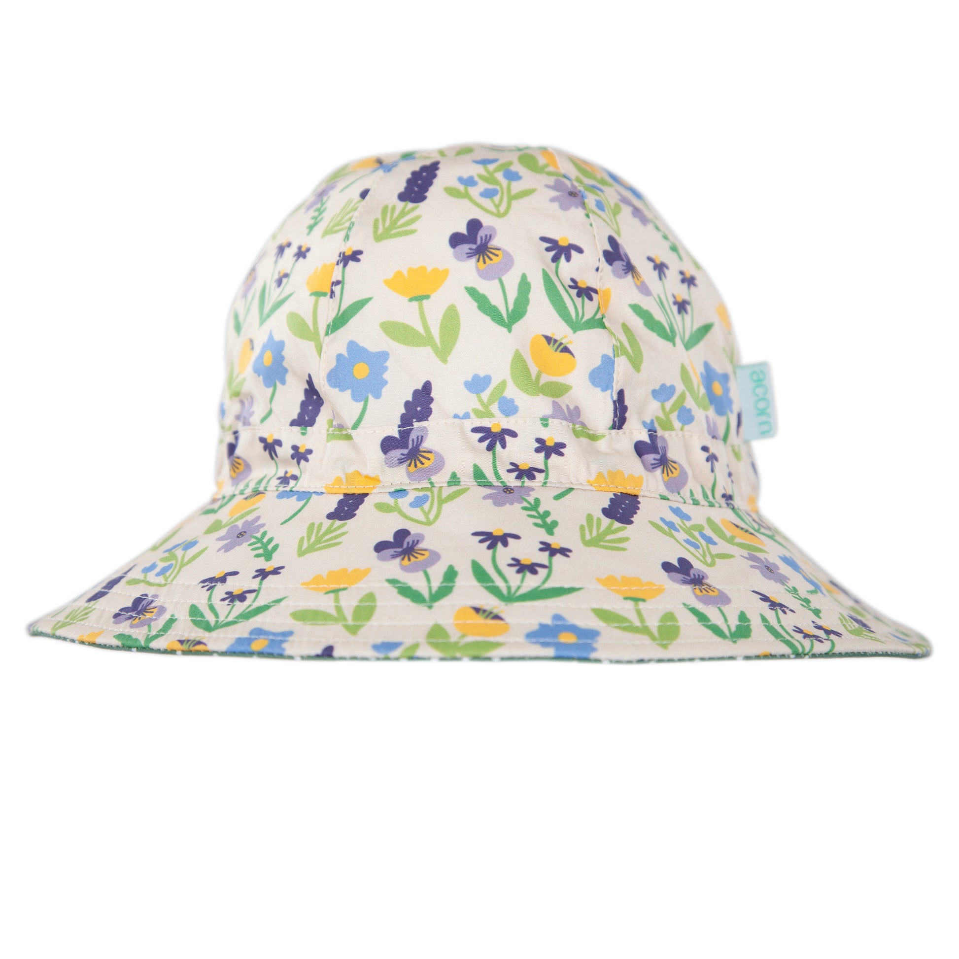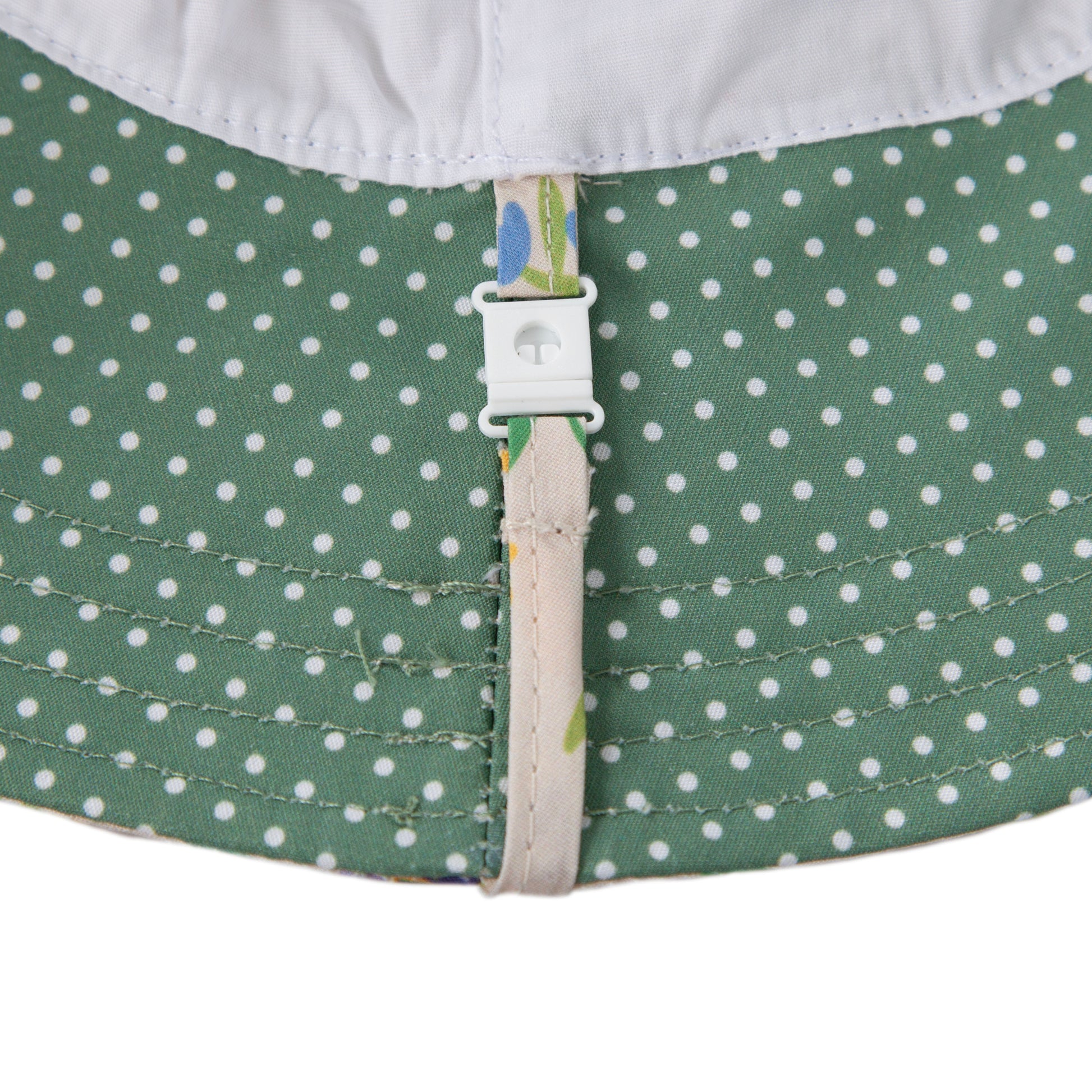 Celebrate the magic of spring with this wide-brim sunhat, featuring a gorgeous floral print designed by Jacinta Weir from Two Little Ducklings on the outside and a sweet sage-and-white polka dot print on the inner brim. A cheerful hat that’s ready to pair with every sunny-day outfit!