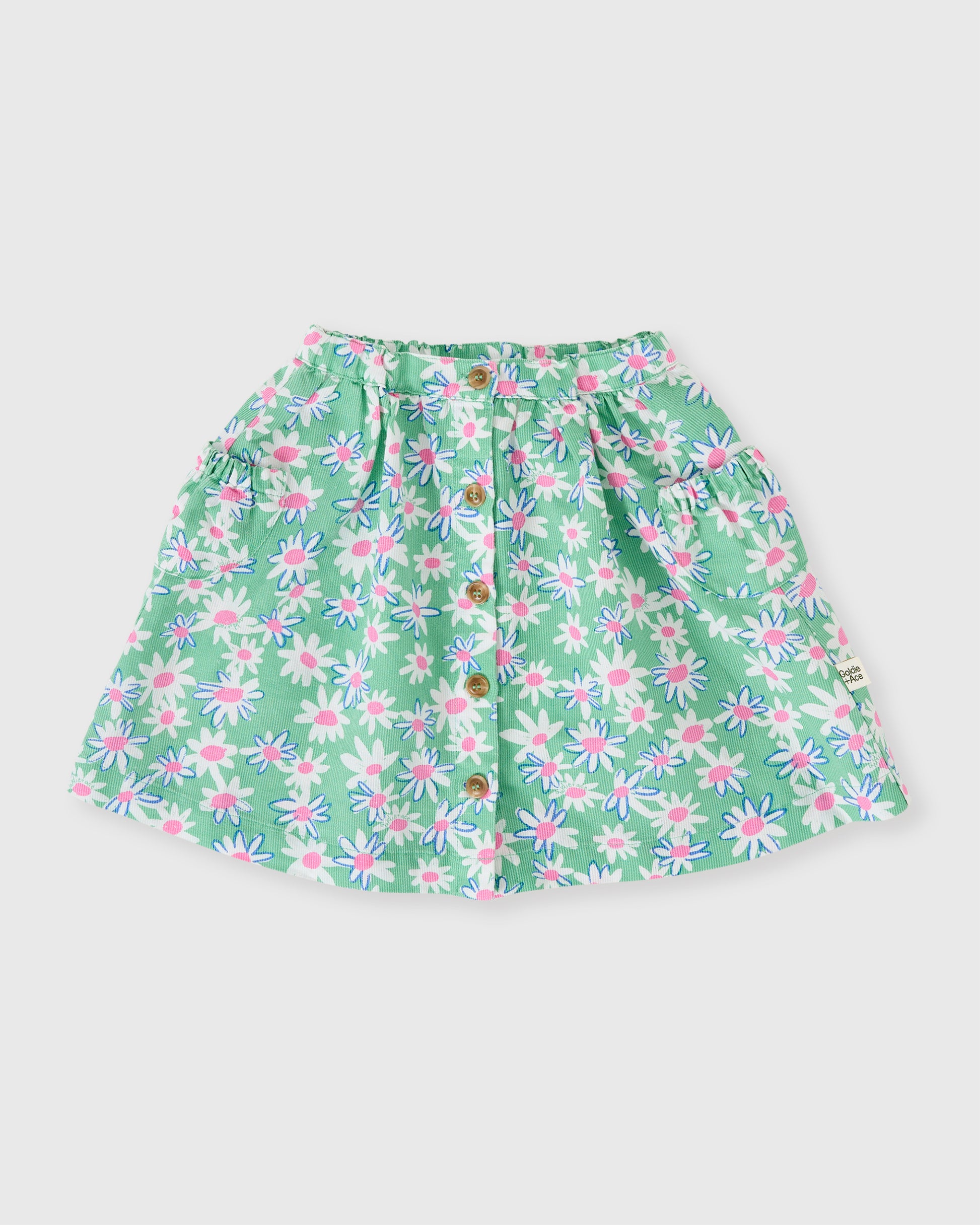 Goldie + Ace Daisy Patch Presley Pocket Skirt Moss