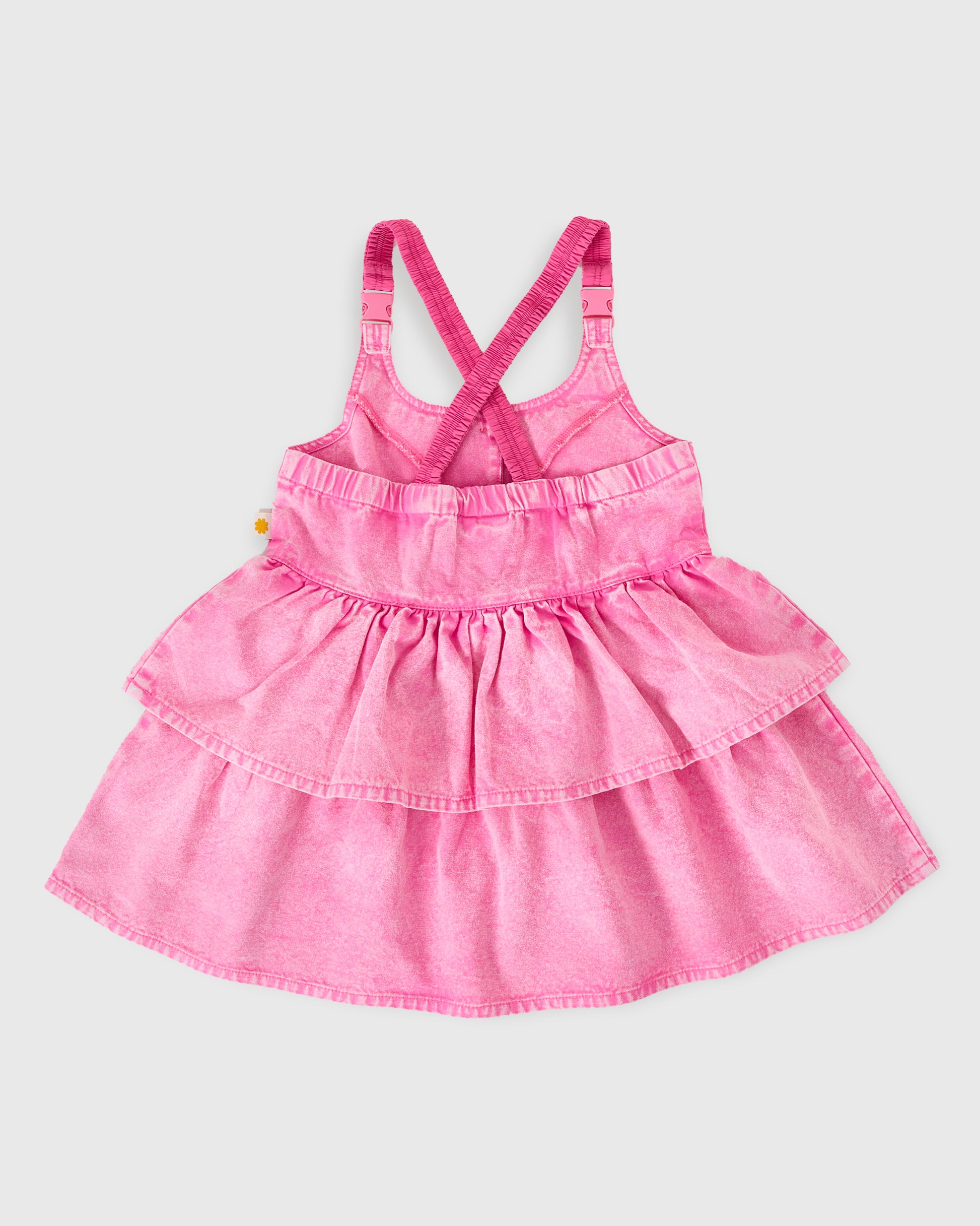 Goldie + Ace Saskia Denim Frill Pinafore Dress Pink Lemonade