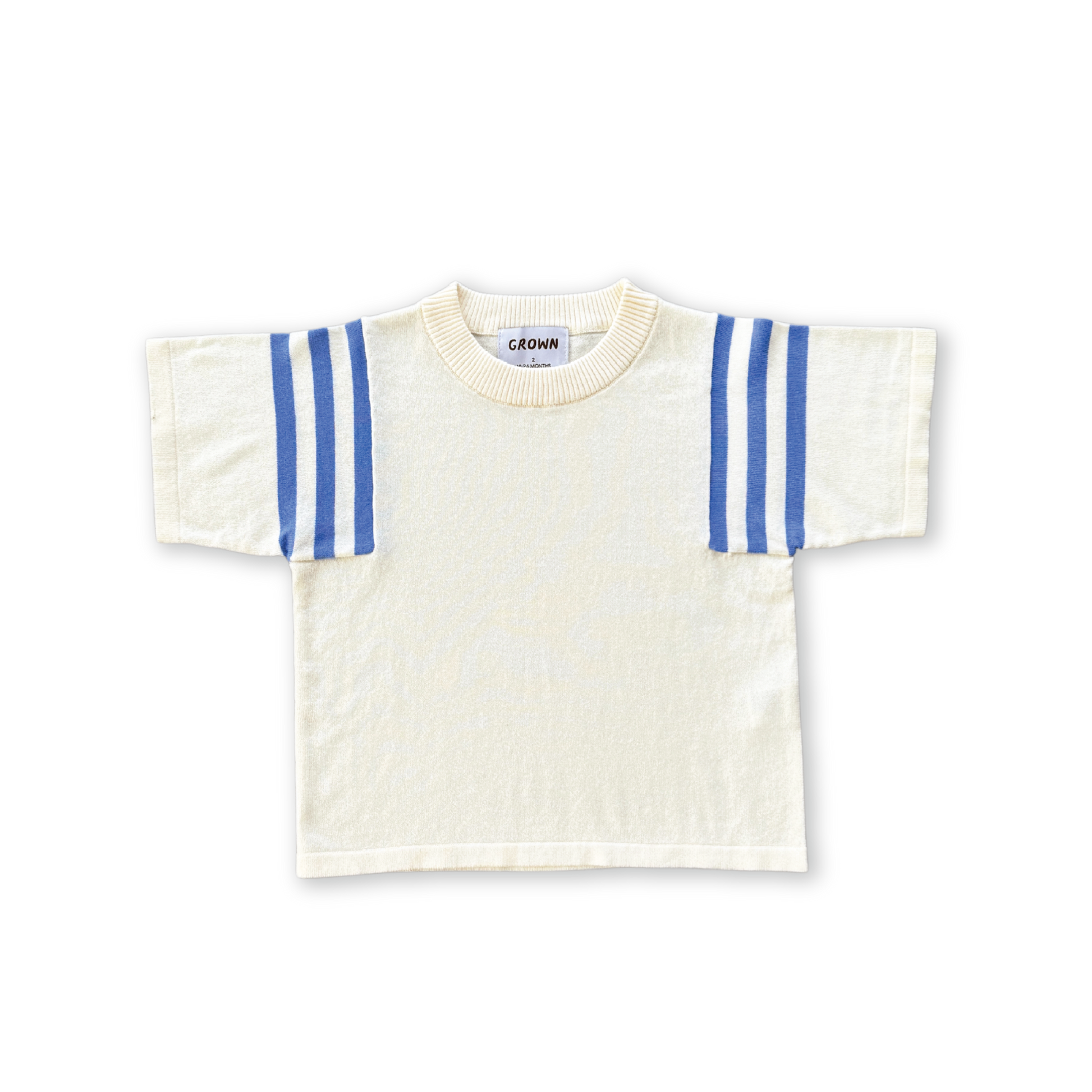 Grown Knitted Stripe Sleeve Knitted Tee Milk
