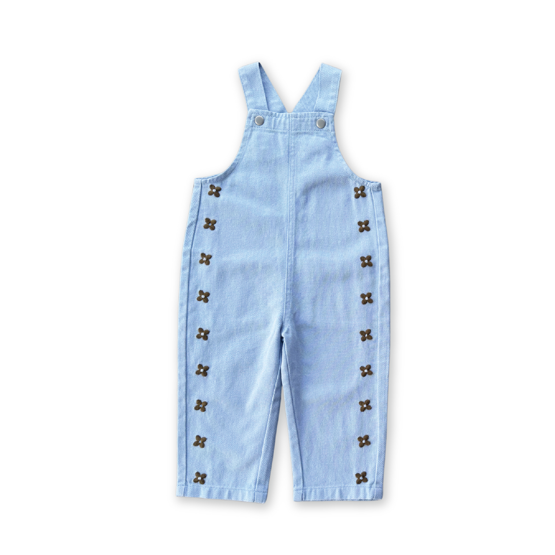 Grown Organic Embroidery Posy Overalls Ice Blue